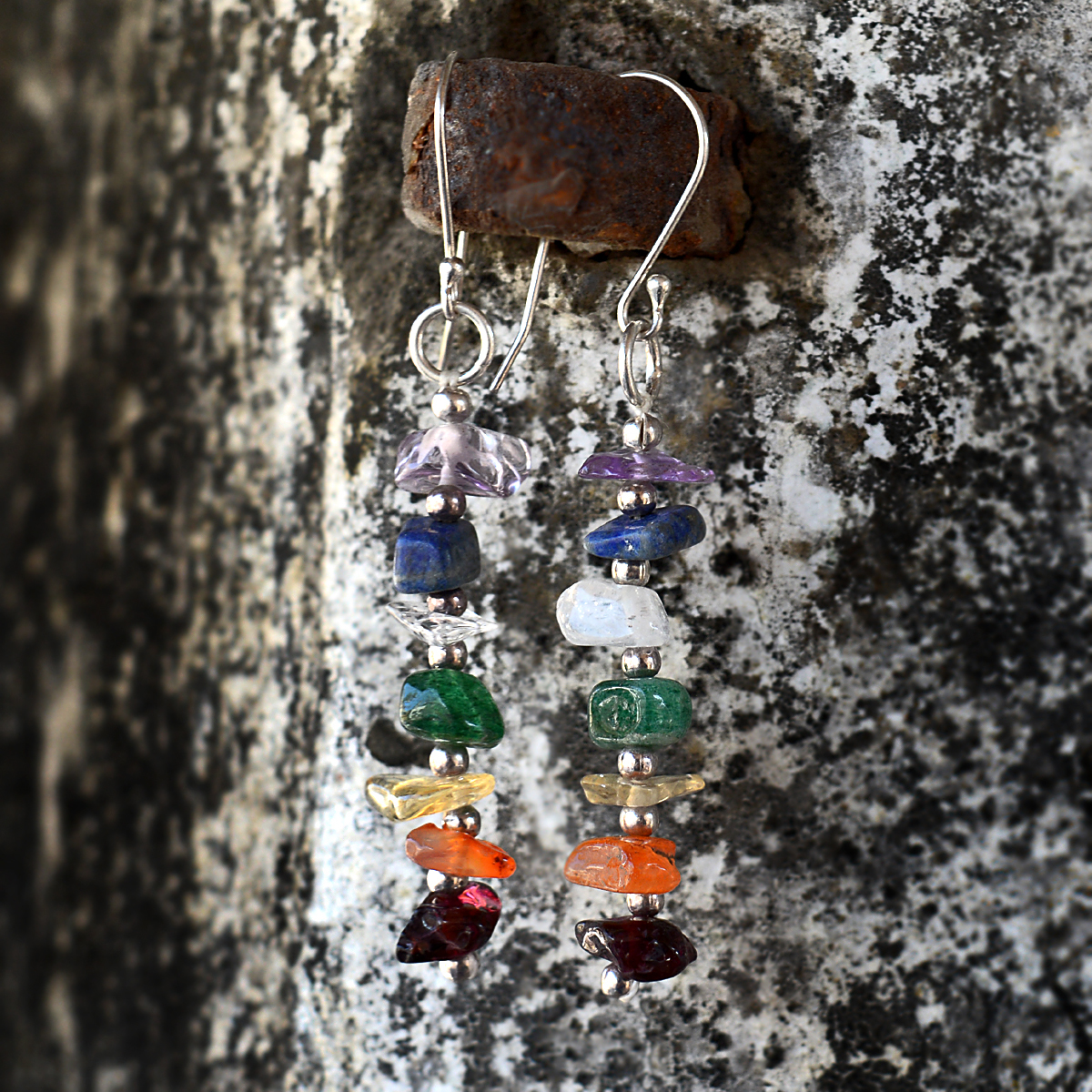 Explore in english - Multi Gemstone Silver Earring PG-156053