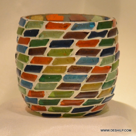हस्तनिर्मित मोज़ेक ग्लास मोमबत्ती धारक