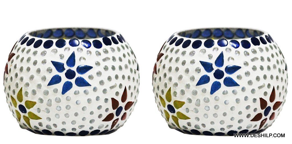 हस्तनिर्मित मोज़ेक ग्लास मोमबत्ती धारक