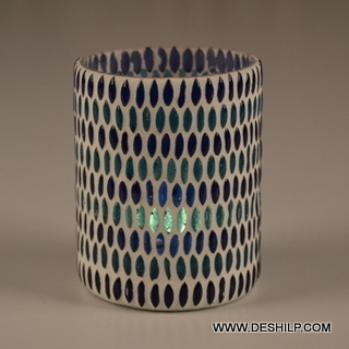 पॉलिशिंग मल्टी मोज़ेक ग्लास कैंडल होल्डर