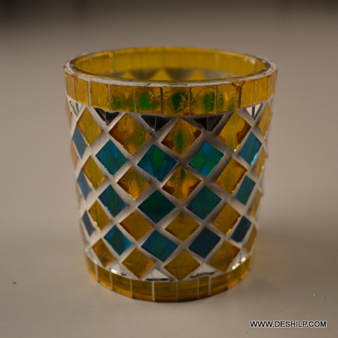 हस्तनिर्मित मोज़ेक ग्लास मोमबत्ती धारक