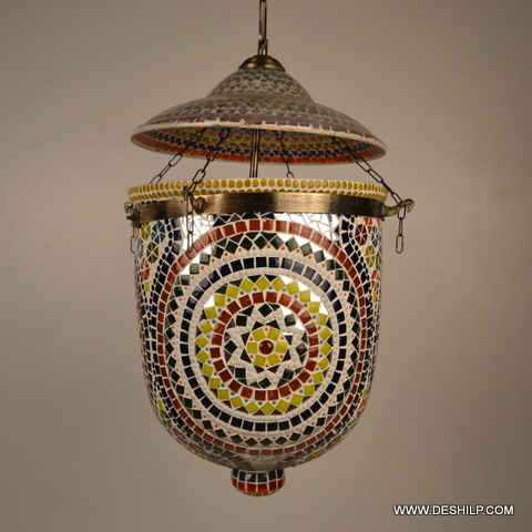 मल्टीकलर मल्टी मोज़ेक ग्लास वॉल हैंगिंग लैंप
