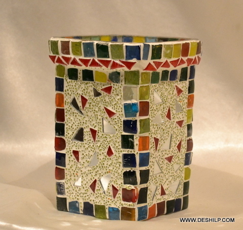 पॉलिशिंग मल्टी मोजाइक स्मॉल कैंडल होल्डर