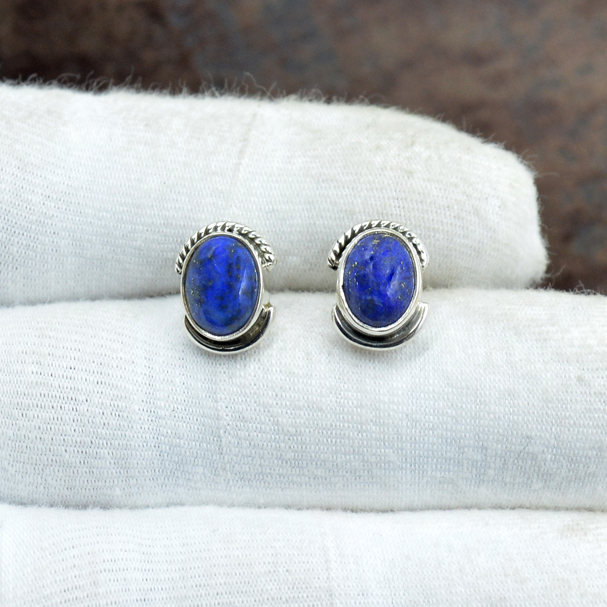 Mz Er-2512 925 स्टर्लिंग सिल्वर नेचुरल लैपिस लाजुली ओवल शेप जेमस्टोन स्टड ईयररिंग महिलाओं के लिए