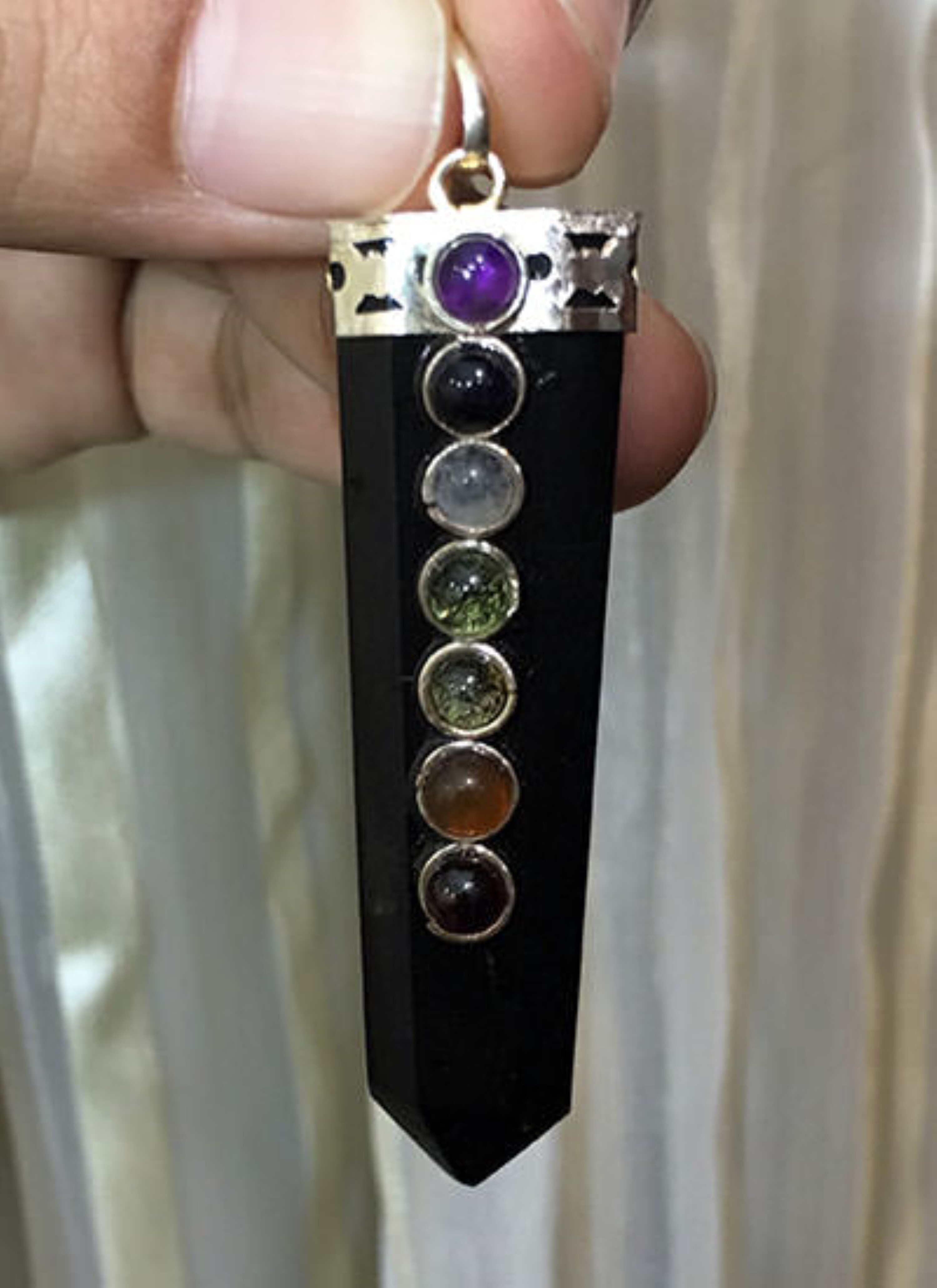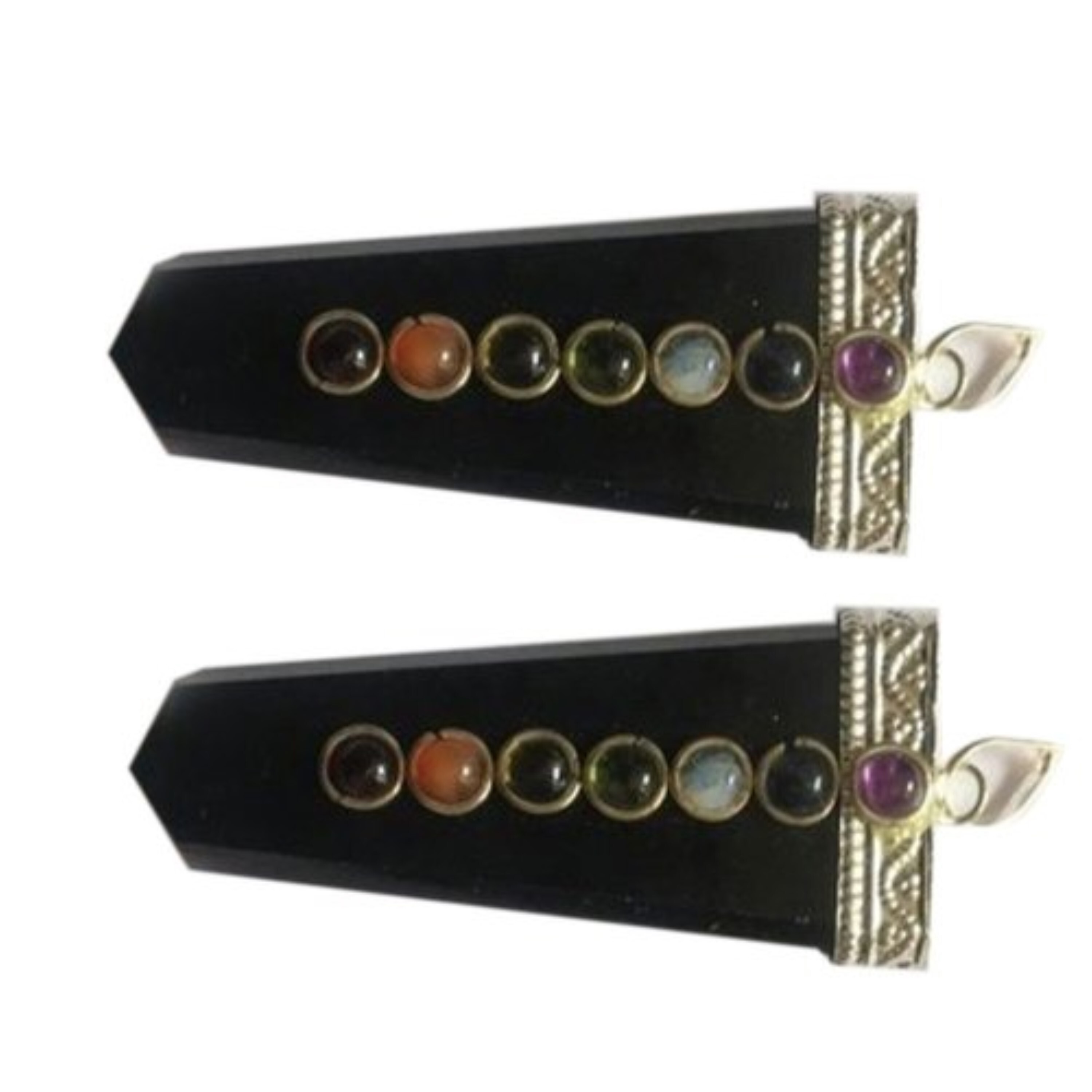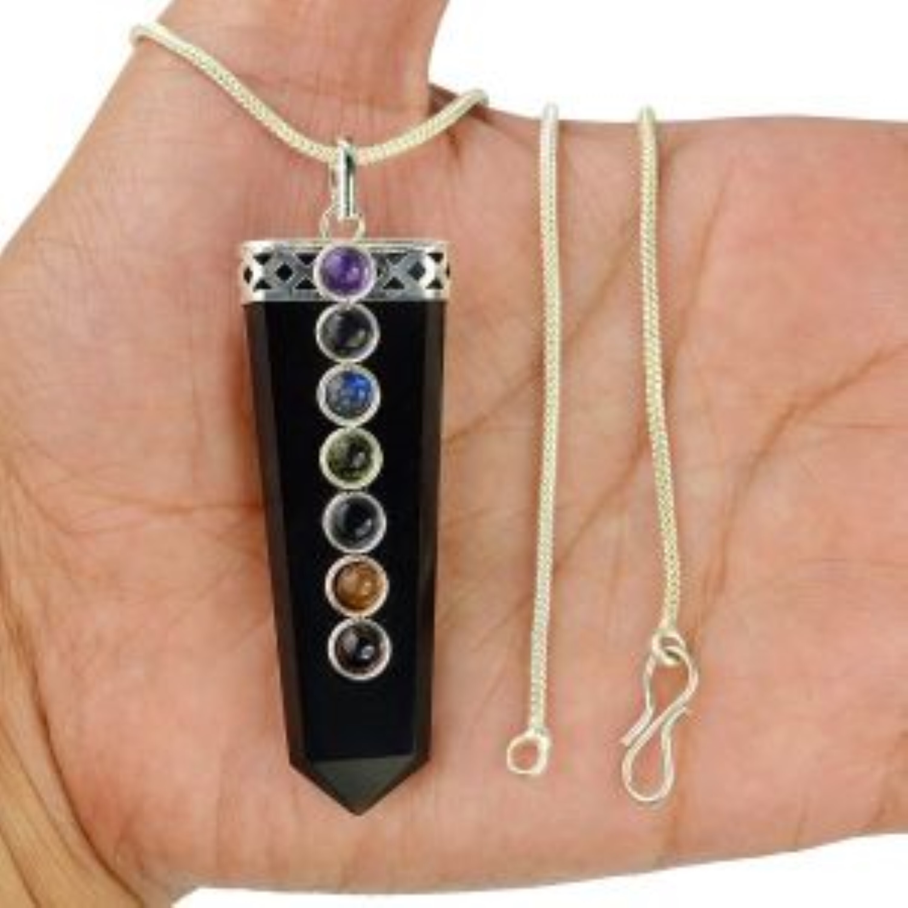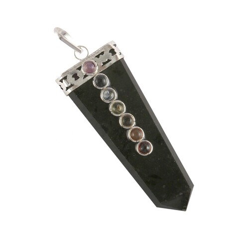 नेचुरल ब्लैक एजेट सेवन चक्र स्टोन्स फ्लैट पेंडेंट