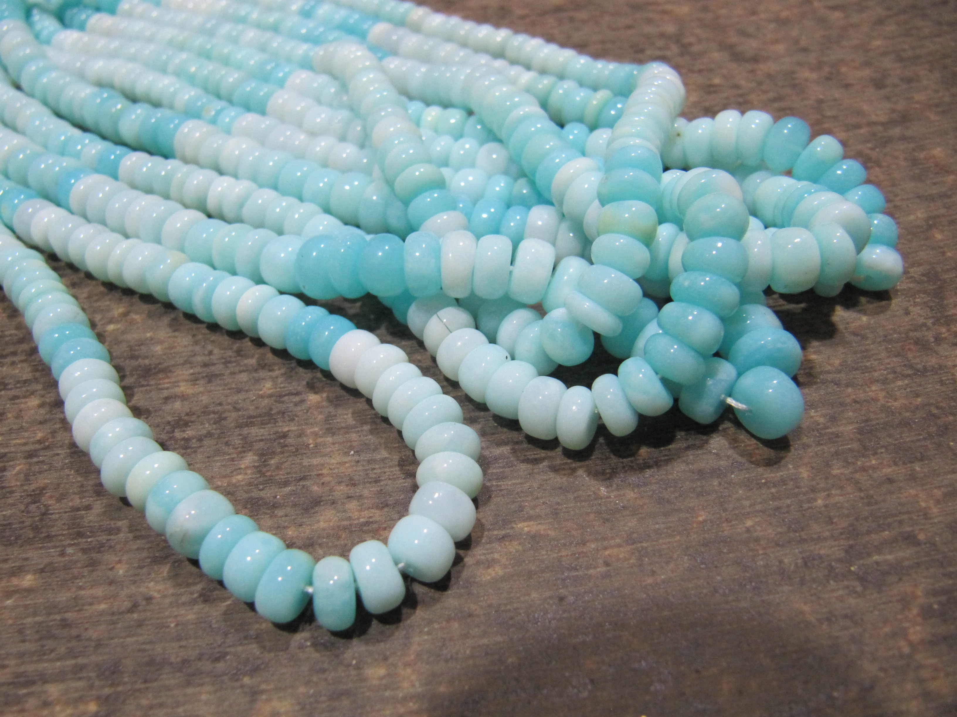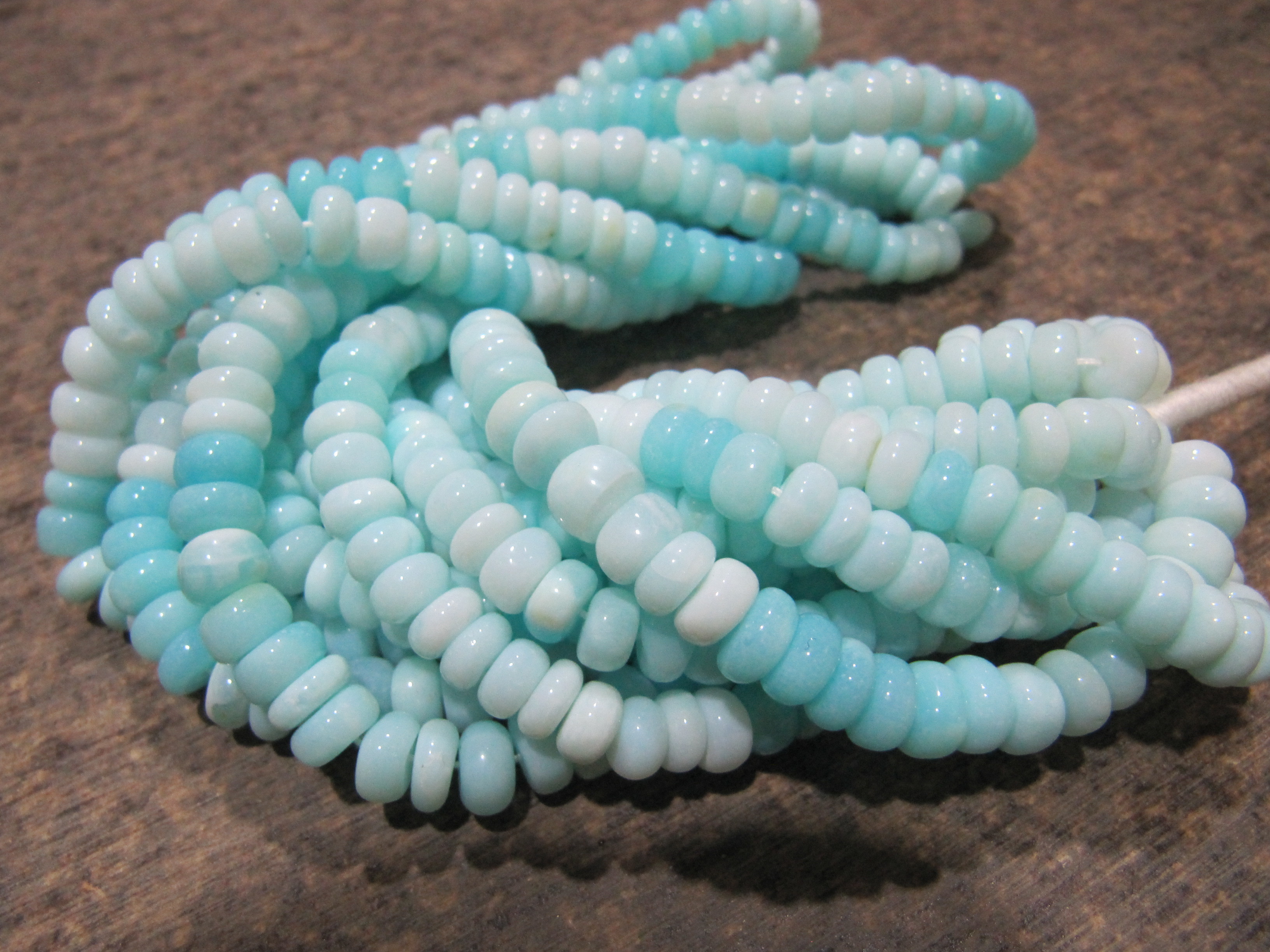Explore in english - Natural Blue Peruvian Opal Rondelle Plain Smooth Beads 5-6mm