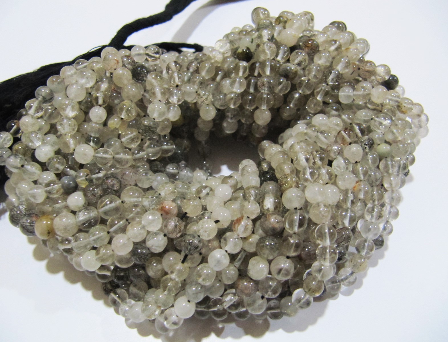 स्टोन नेचुरल असली काले रूटाइल वाले गोल सादे स्मूथ बीड्स