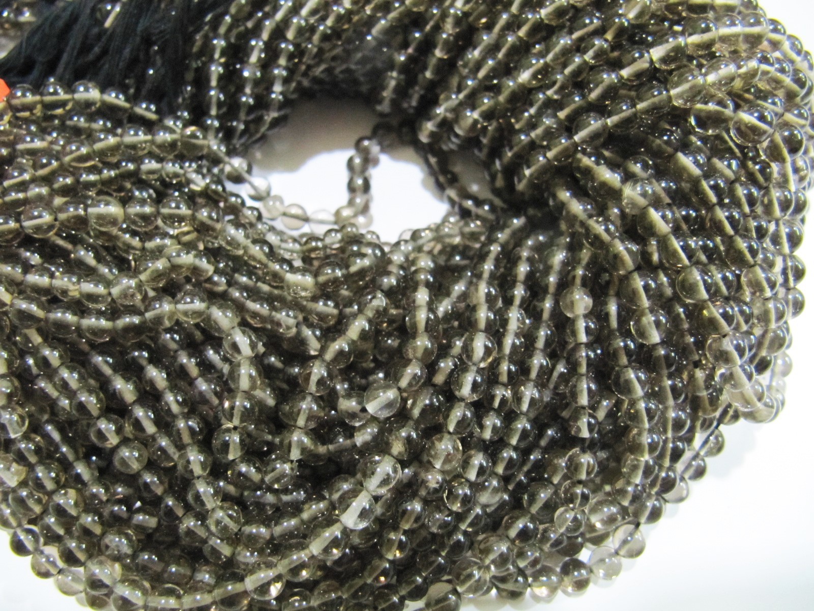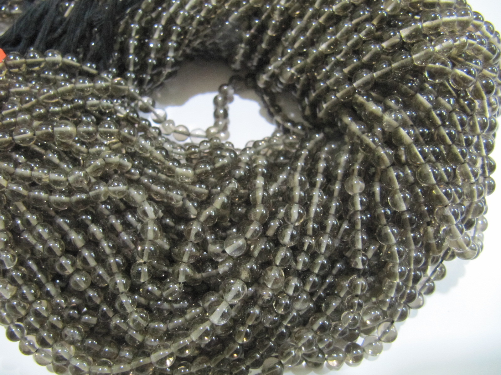 स्टोन नेचुरल असली स्मोकी क्वार्ट्ज़ राउंड प्लेन बीड्स