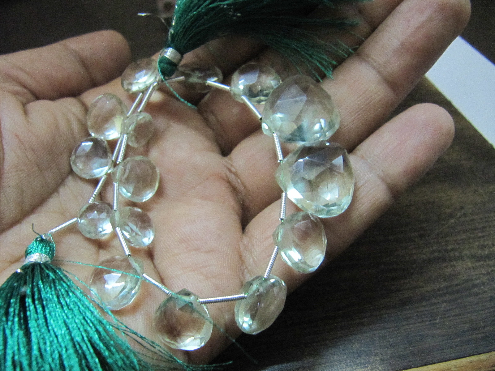 Explore in english - Natural Green Amethyst Heart Shape Faceted beads