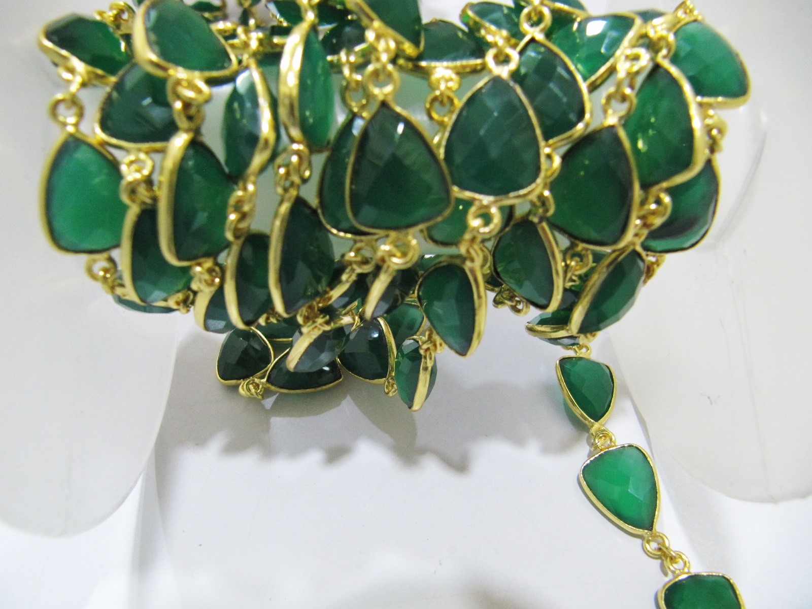 नेचुरल ग्रीन ओनिक्स ट्रिलियन शेप ब्रियोलेट चेन साइज़: 10x13mm
