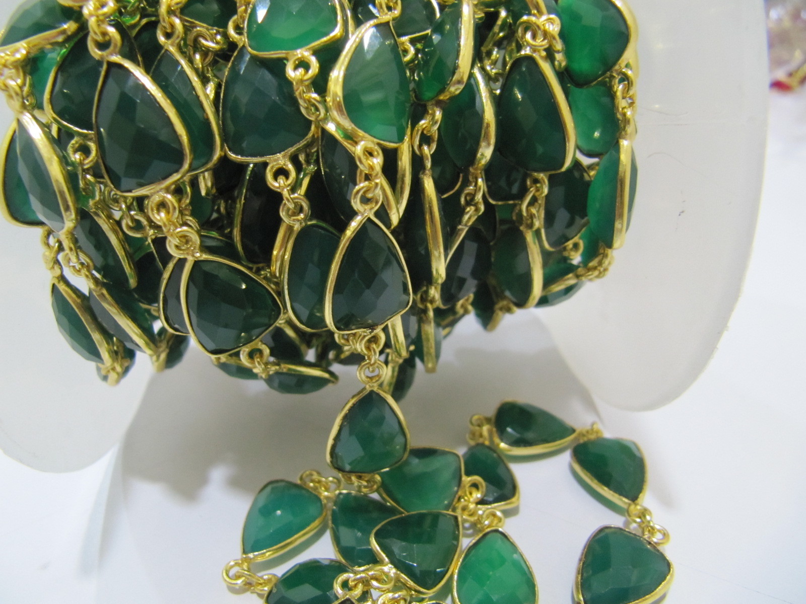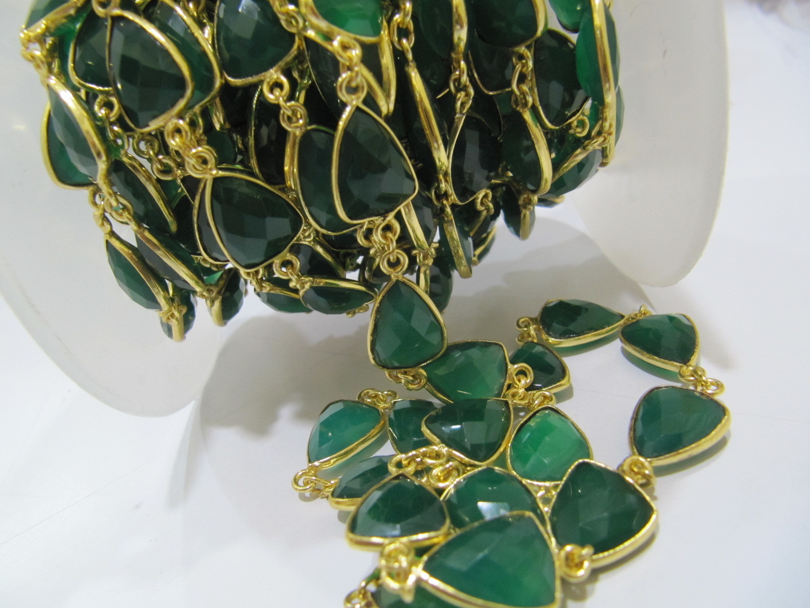 Explore in english - Natural Green Onyx Trillion Shape Briolette chain