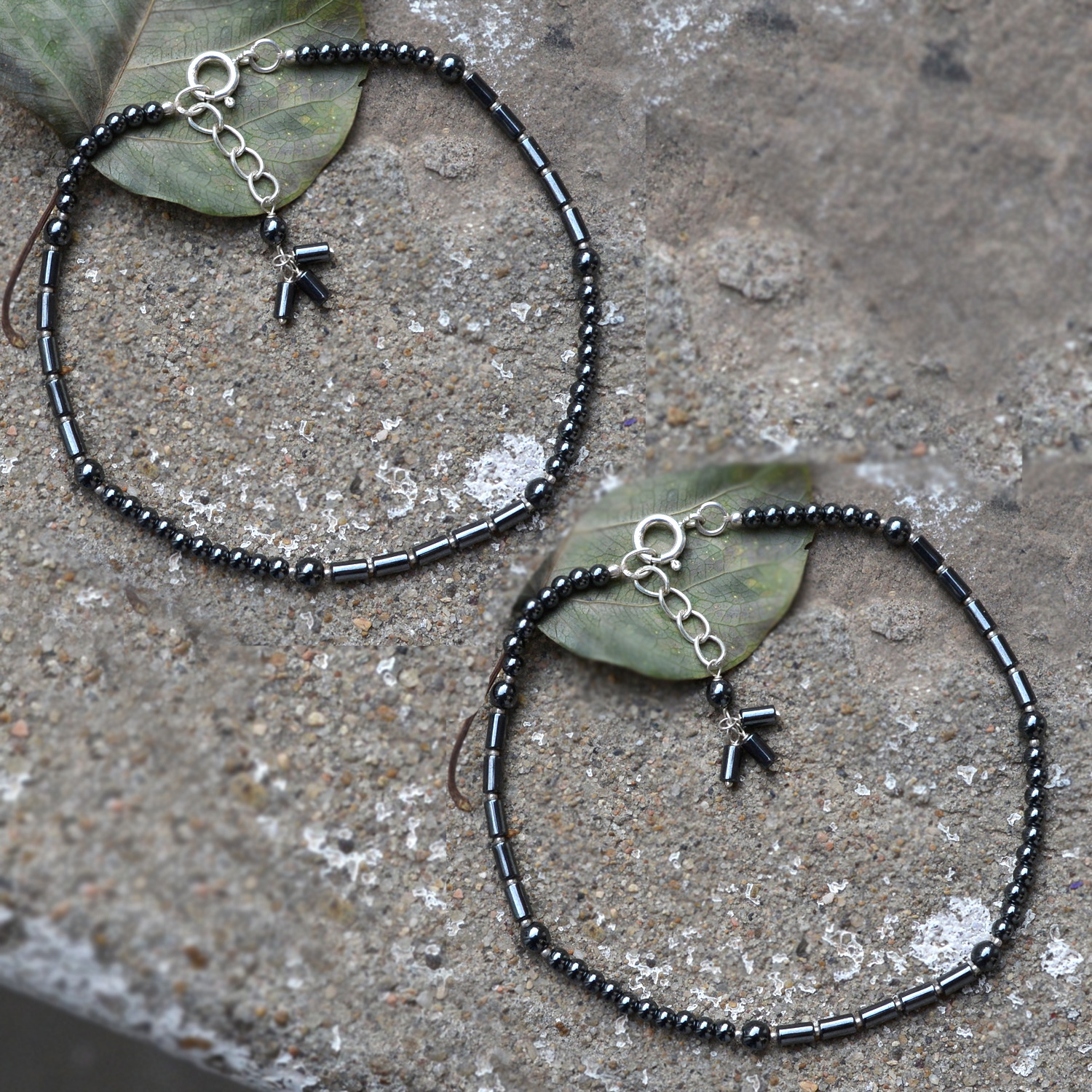 Explore in english - Natural Hematite Gemstone Anklet 925 Sterling Silver Beded Anklet For Women
