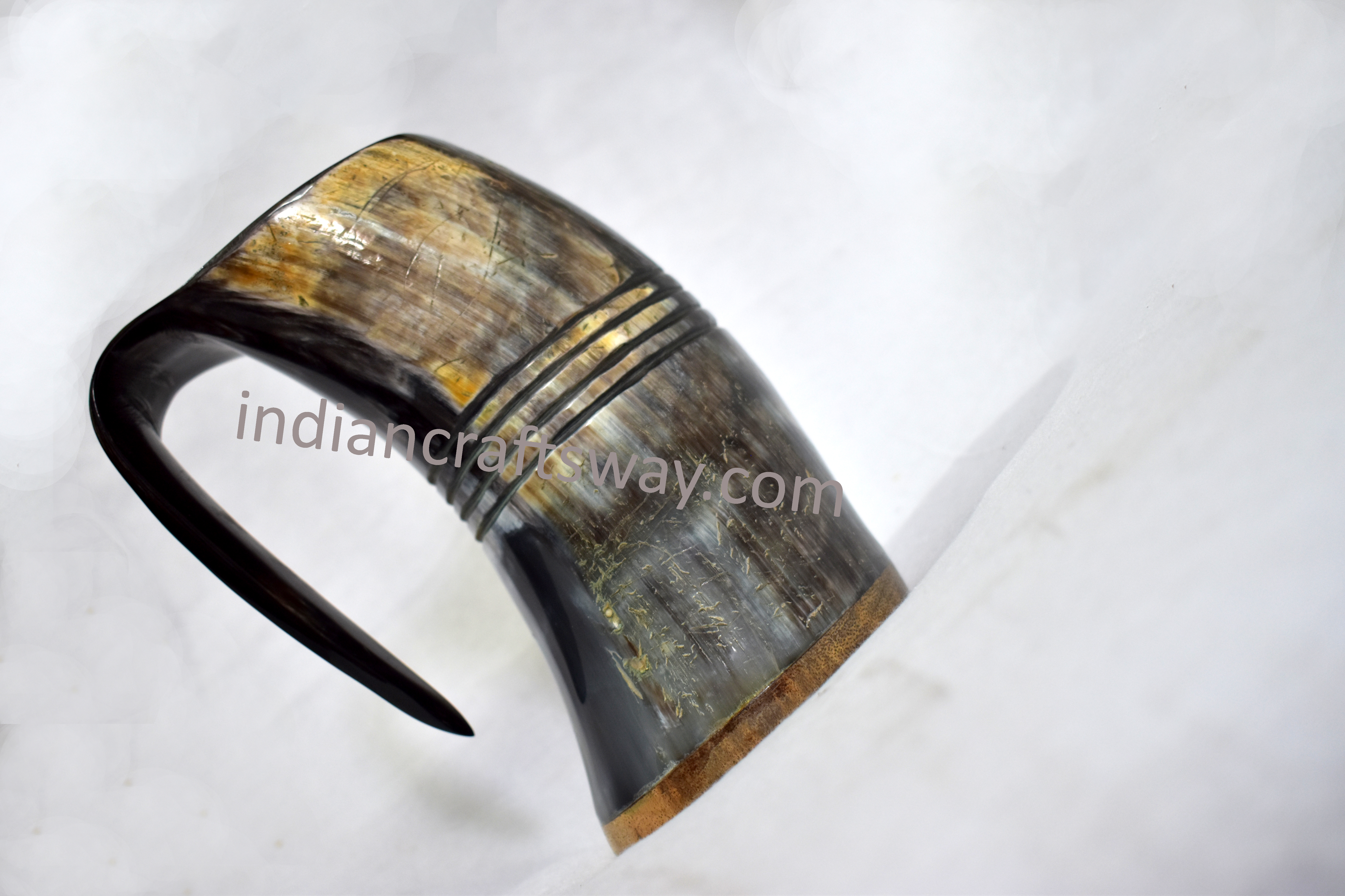 लकड़ी के बेस के साथ मल्टी नेचुरल हॉर्न मग