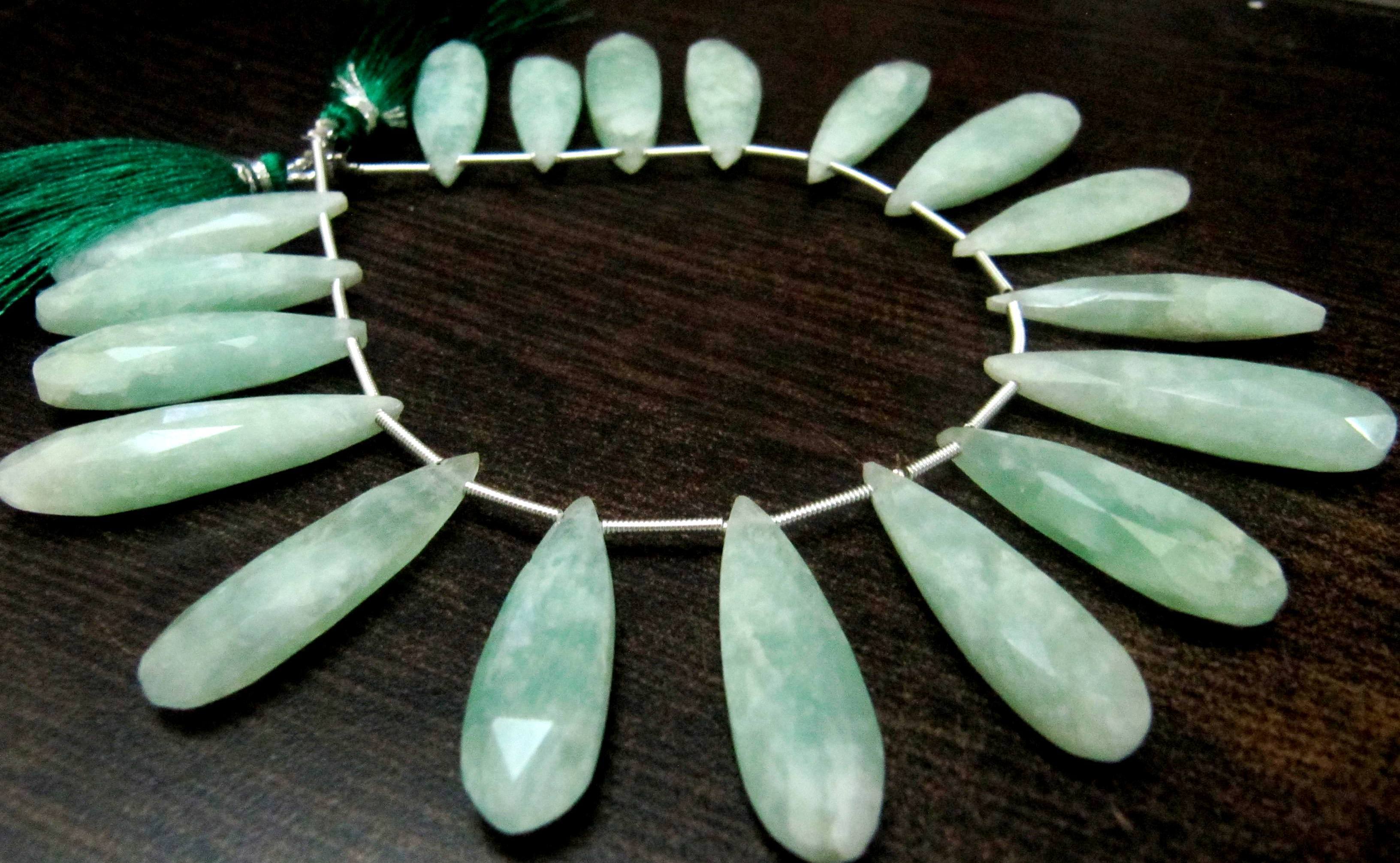 ग्रीन नेचुरल मूनस्टोन रशियन अमेजोनाइट पीयर शेप ज्वेलरी मेकिंग बीड्स