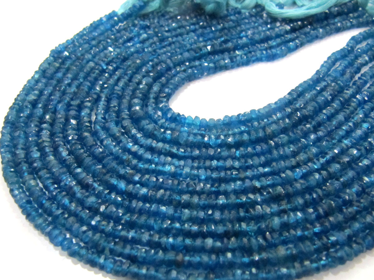 प्राकृतिक नियॉन एपेटाइट रोंडेल फेसटेड साइज 4 मिमी बीड्स
