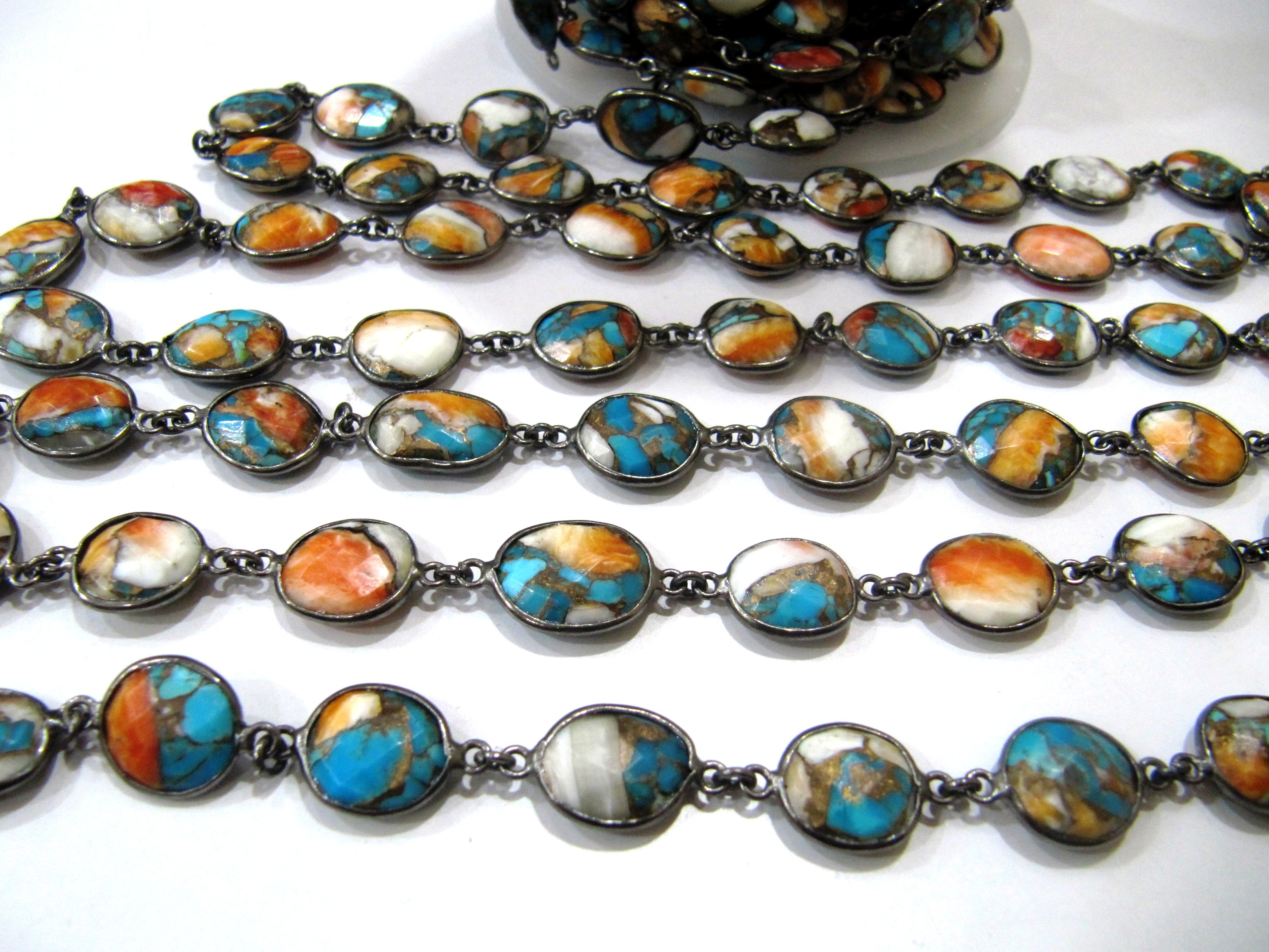Explore in english - Natural Oyster Copper Turquoise Chain Free shape briolette 10to13mm