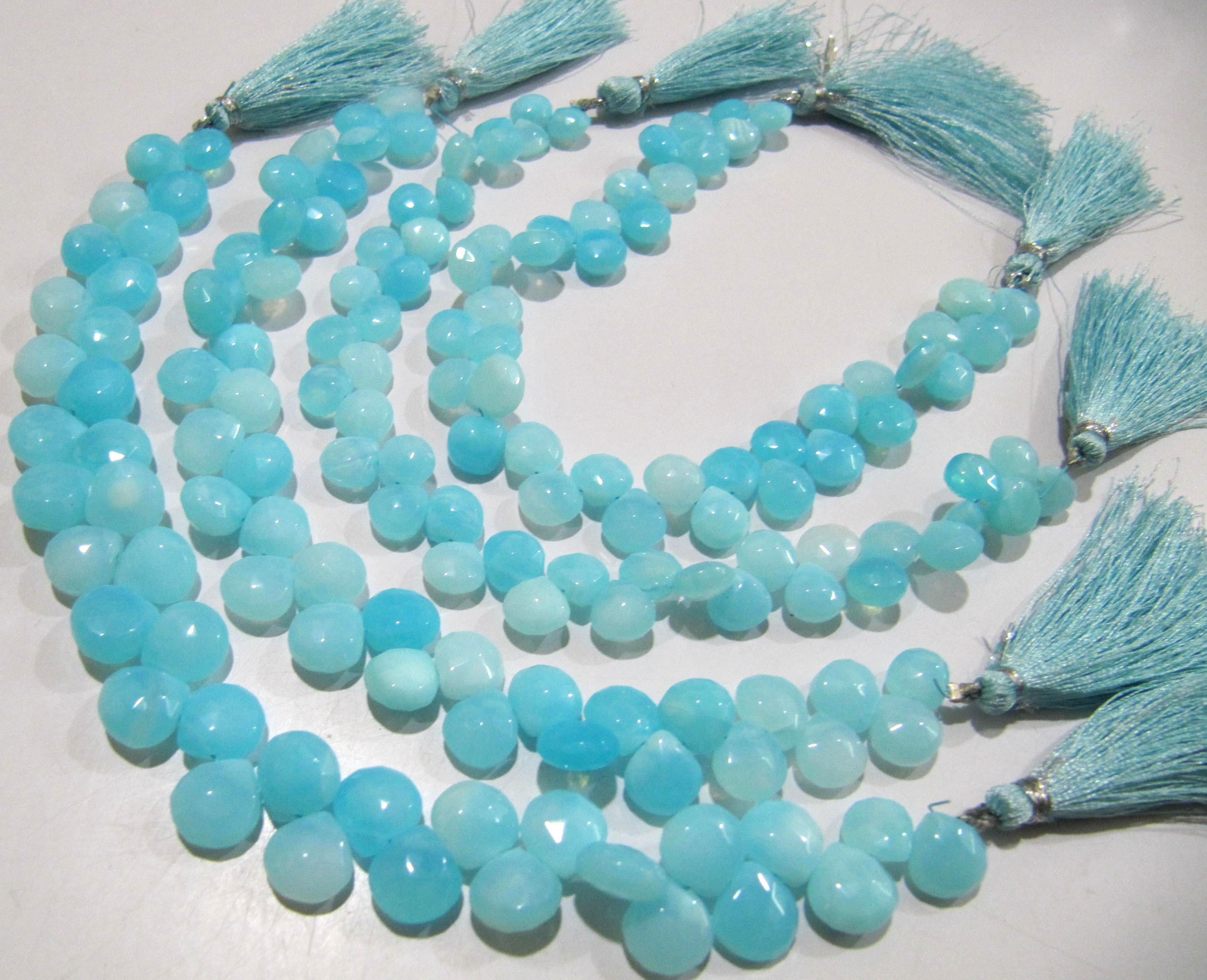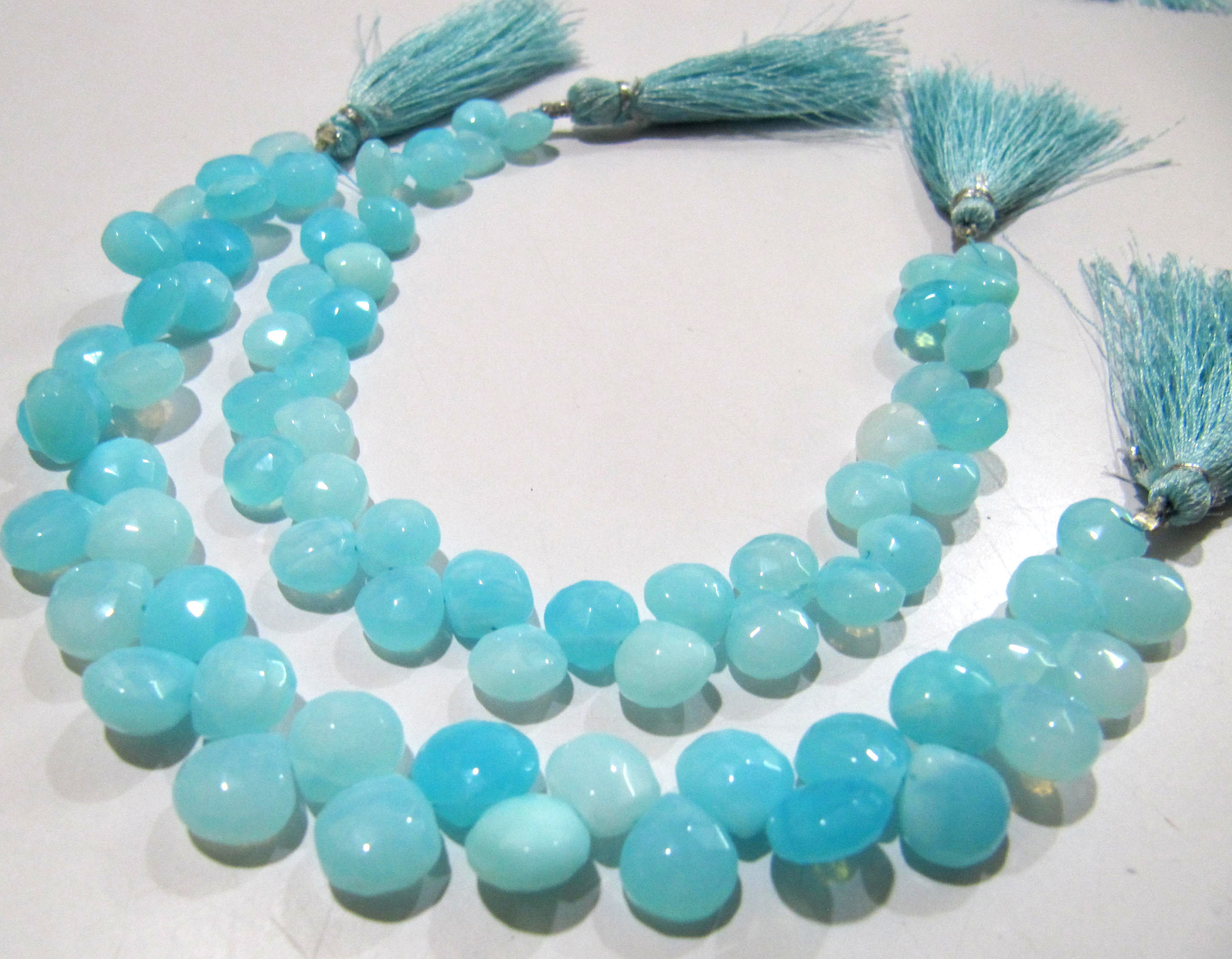 Explore in english - Natural Peruvian Blue Opal Heart Shape 9-10mm Smooth Briolette Beads Strand 8 Inches