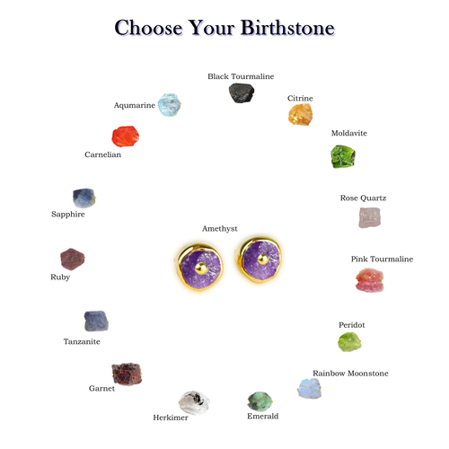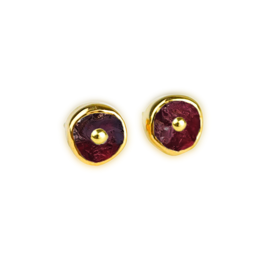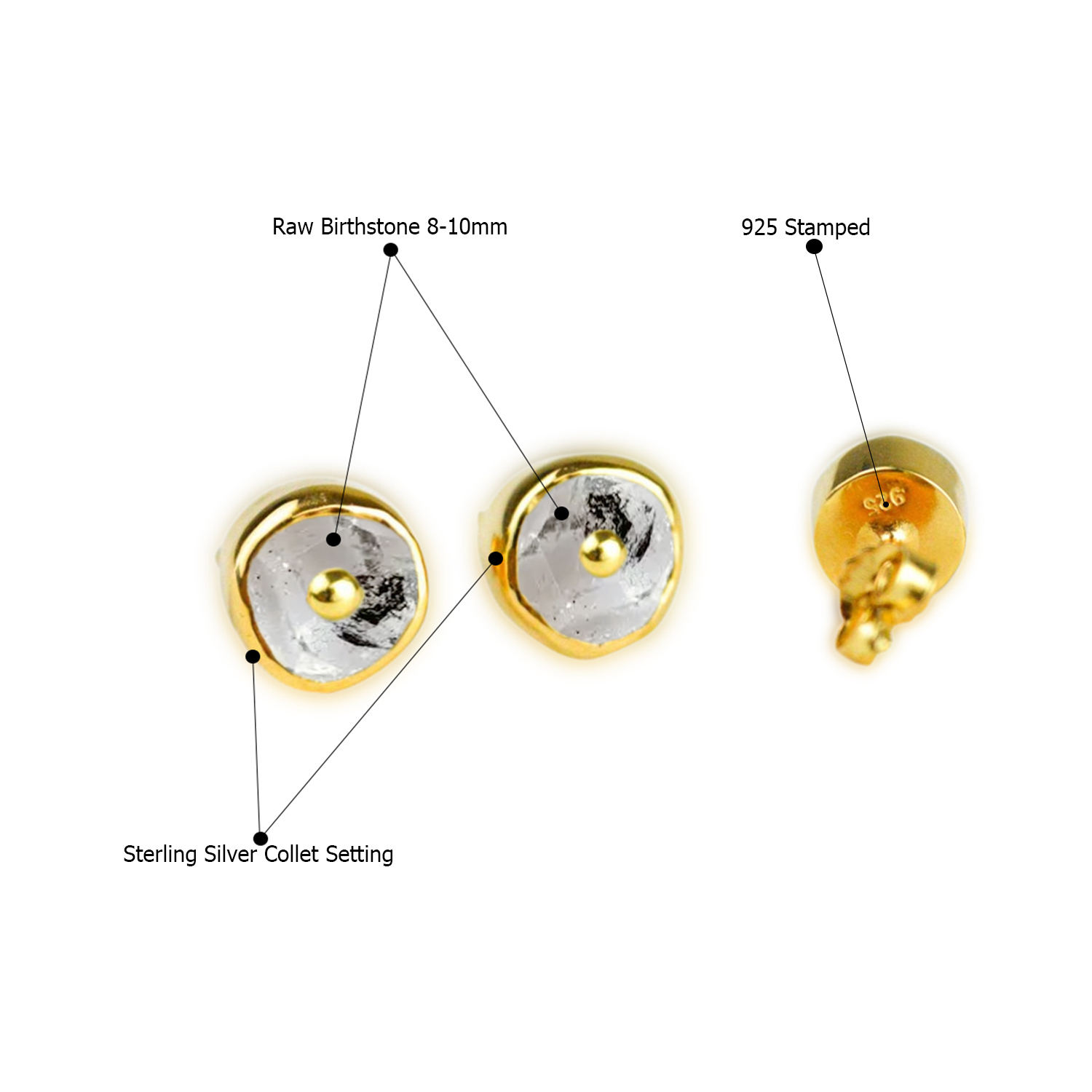 नेचुरल रॉ बर्थस्टोन साइज 8-10 मिमी गोल्ड वर्मील 925 स्टर्लिंग सिल्वर बेज़ल सेट स्टड ईयररिंग