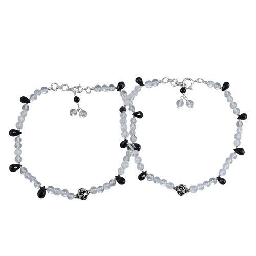 MZ AT-20146 काले गोमेद रत्न पायल 925 स्टर्लिंग सिल्वर हस्तनिर्मित अद्वितीय मनके आभूषण