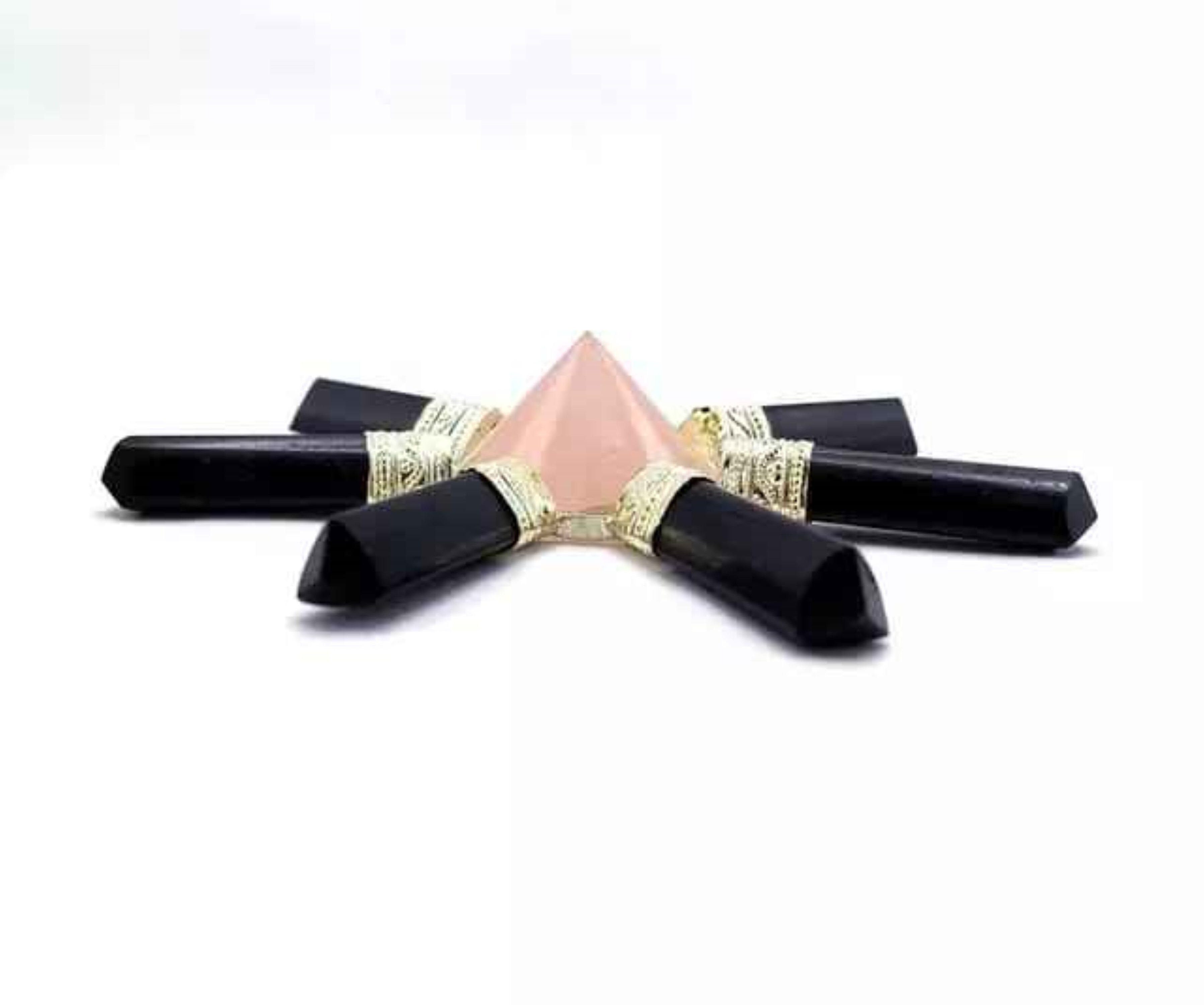 Explore in english - Natural Rose Quartz with Black Agate Gemstone 7 Point Pyramid Energy Generator