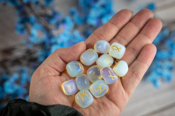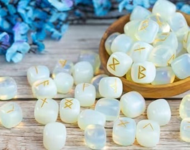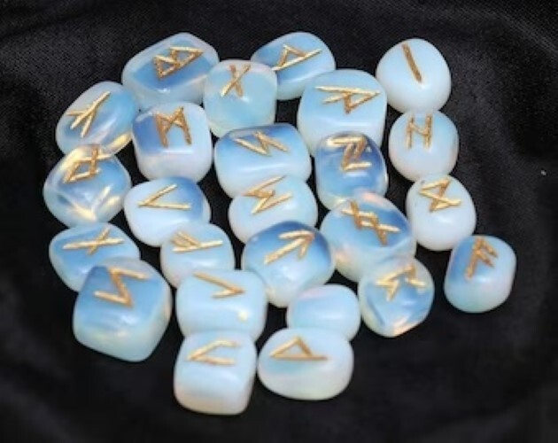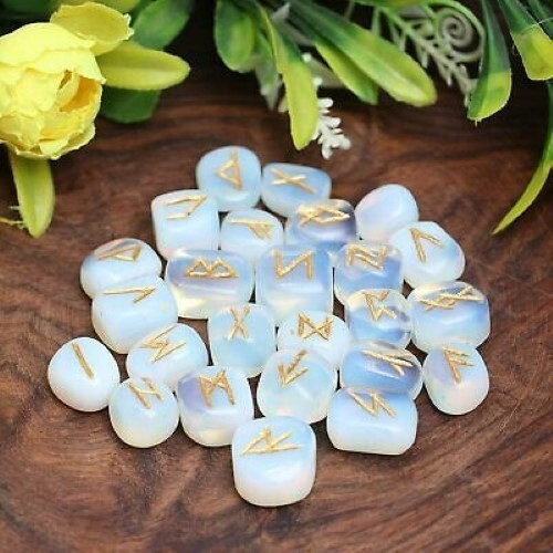 प्राकृतिक सफेद ओपलाइट जेमस्टोन रूण सेट ग्रेड: A+