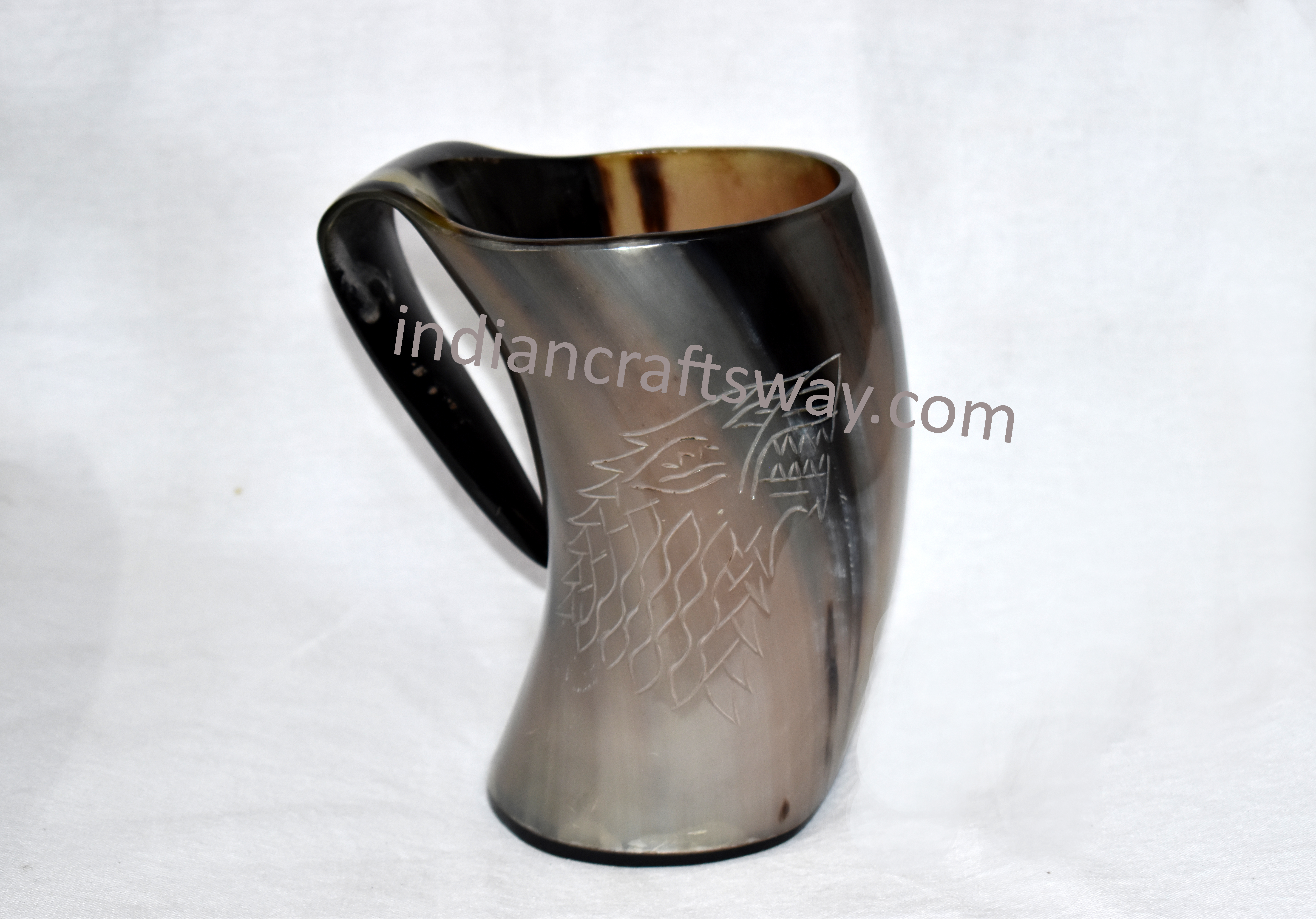 मल्टी नेचुरल वुल्फ कार्व्ड ड्रिंकिंग हॉर्न मग