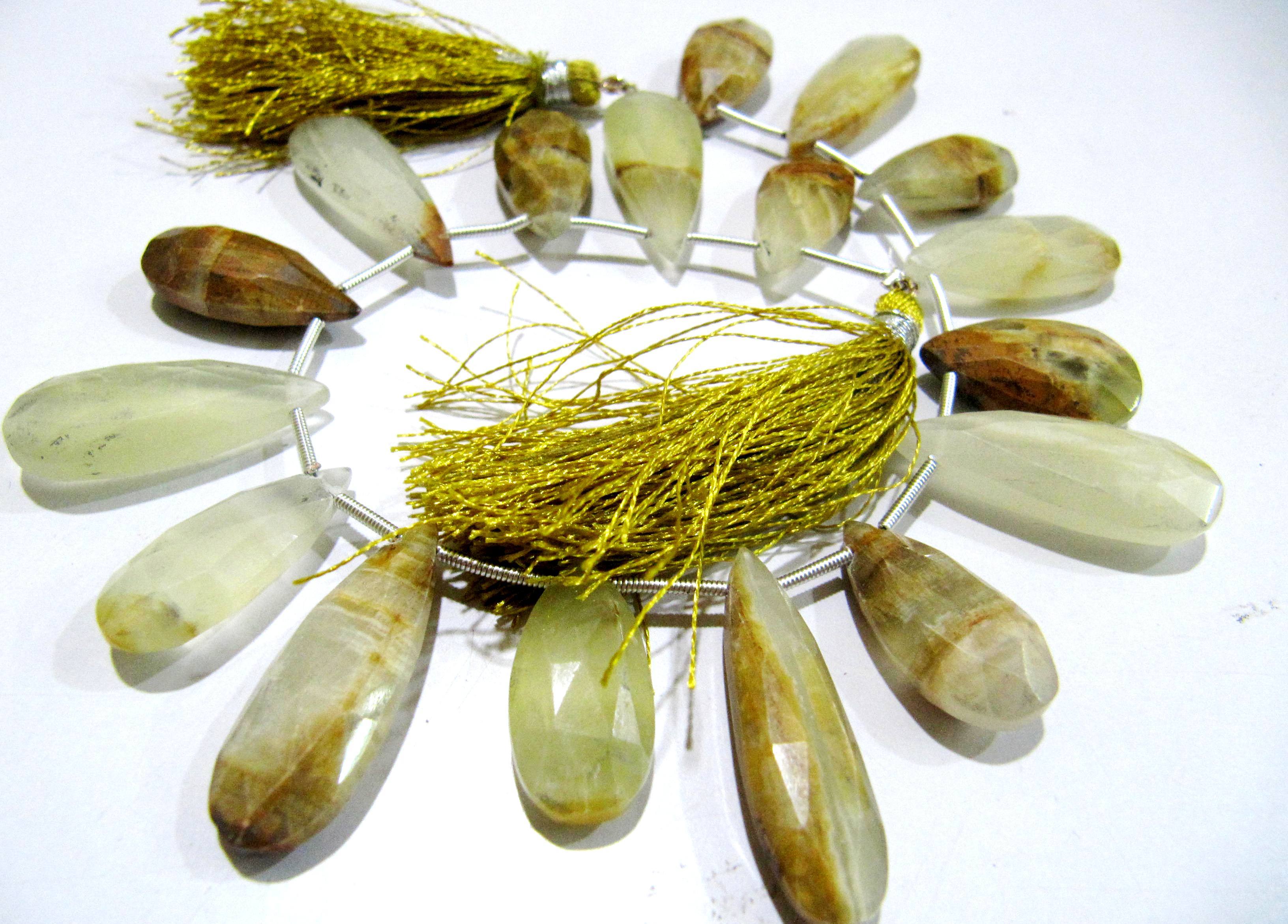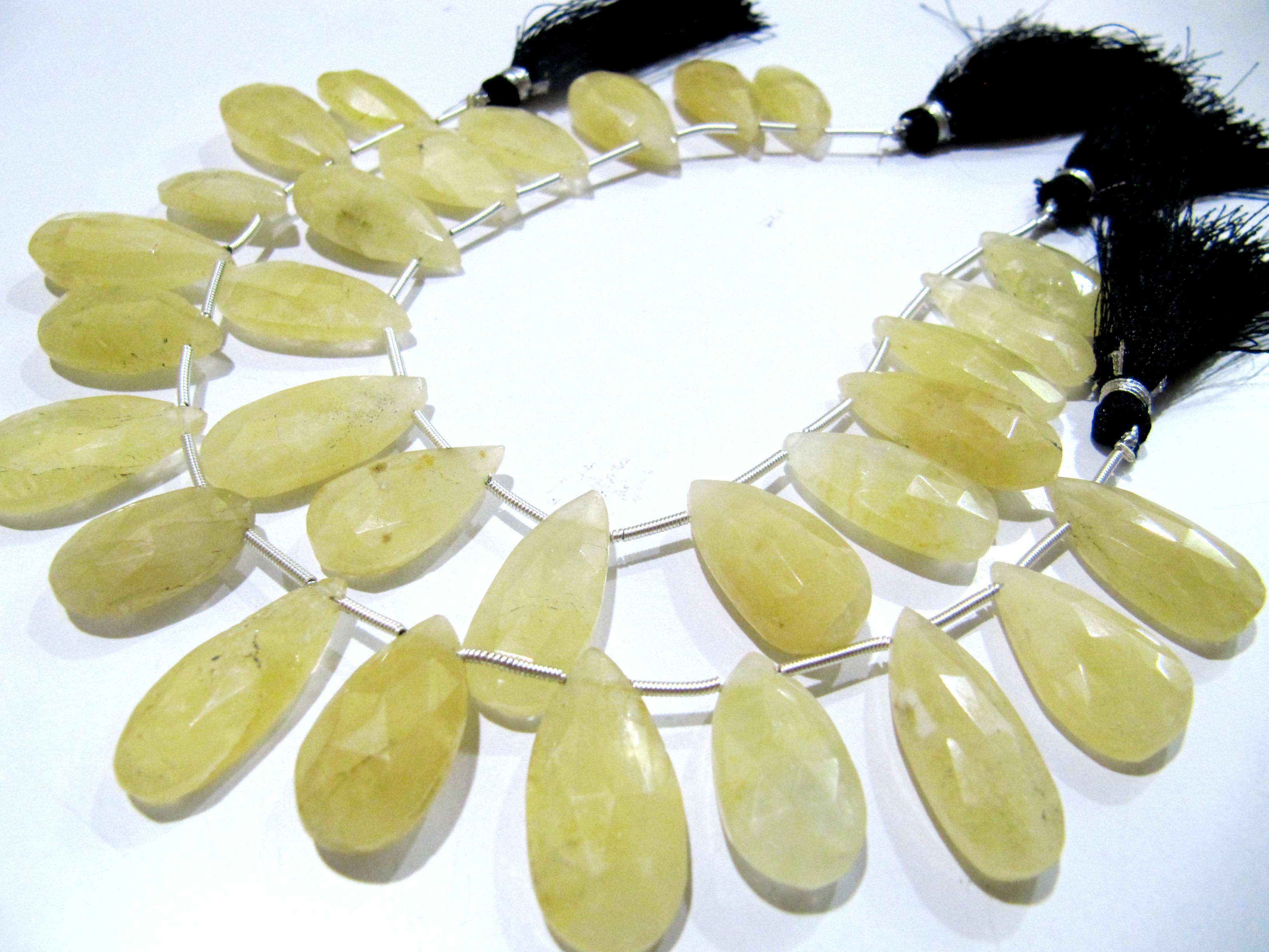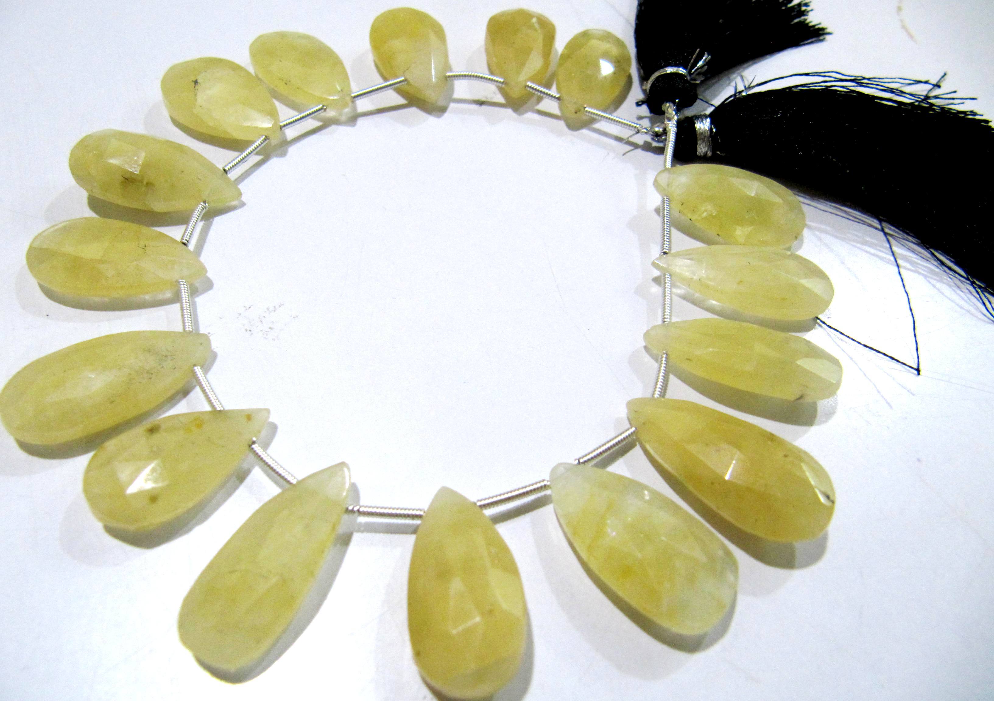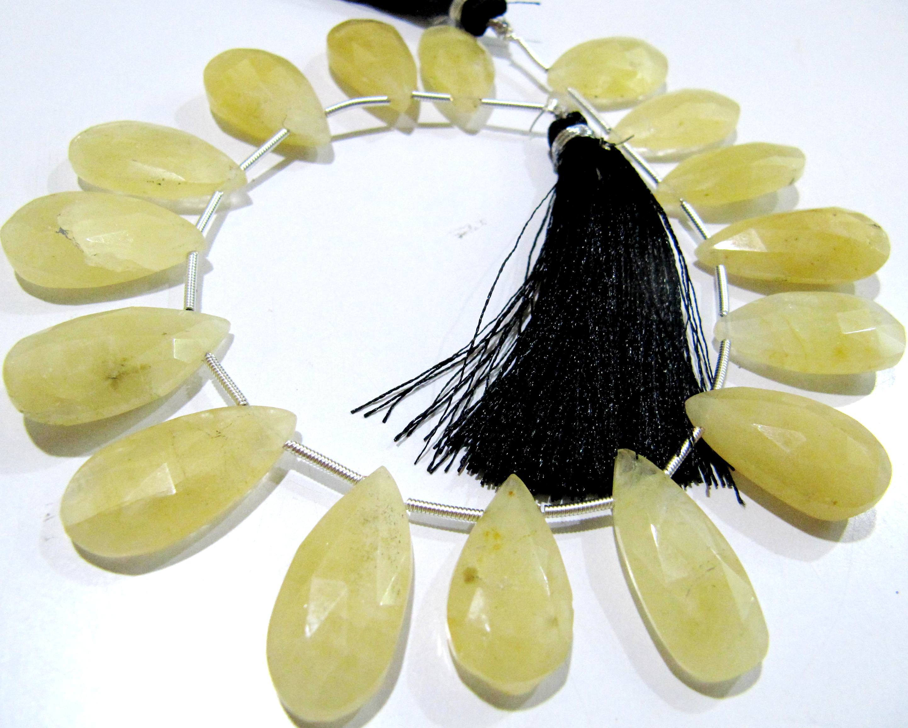 स्टोन नेचुरल येलो एक्वामरीन पीयर शेप फेसेटेड ब्रियोलेट बीड्स