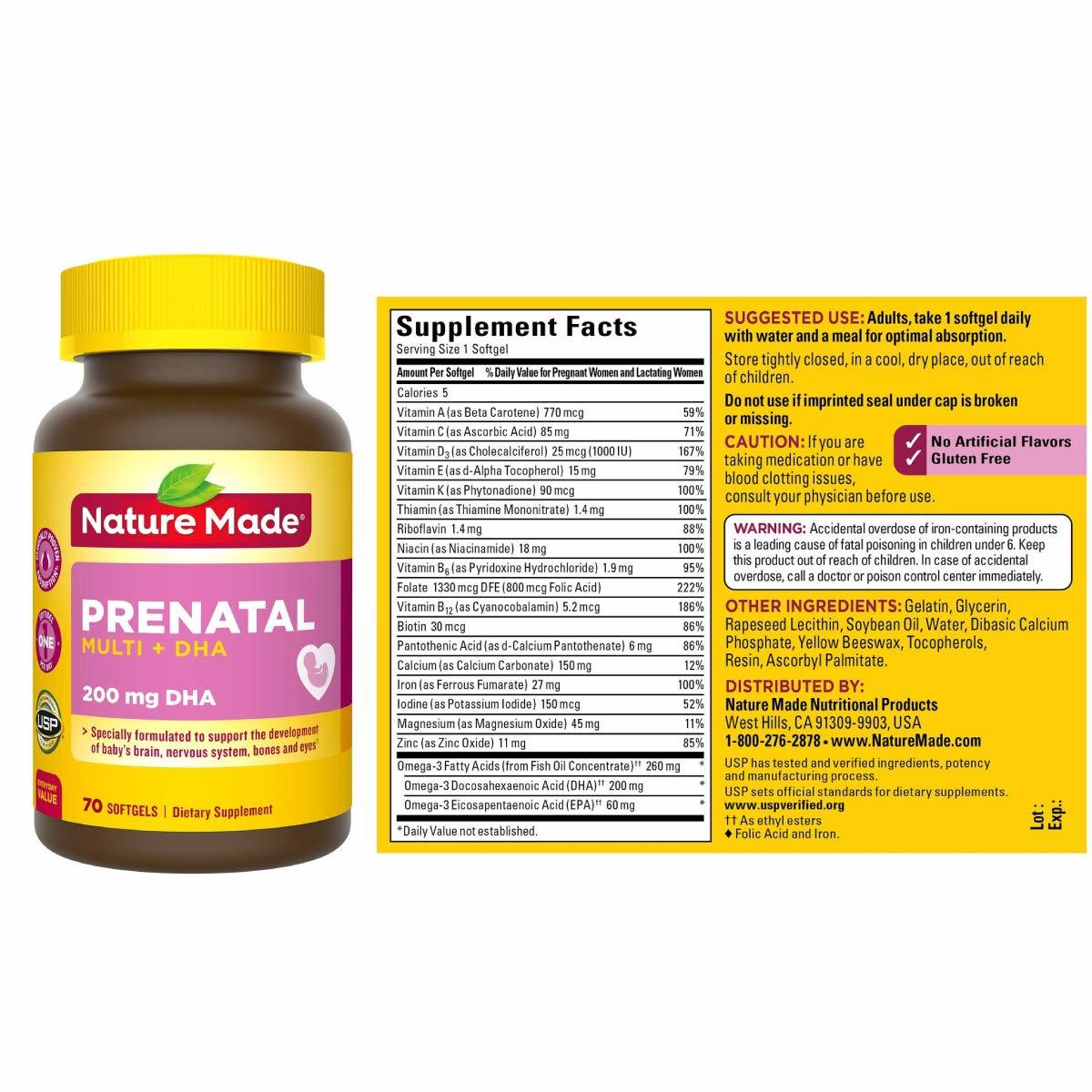Explore in english - Nature Made Prenatal Multi + DHA 200mg Softgels 70 Softgels