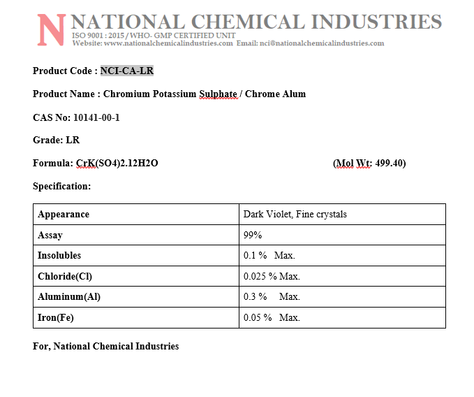 Explore in english - Chromium Potassium Sulphate (Chrome Alum) Powder LR Grade