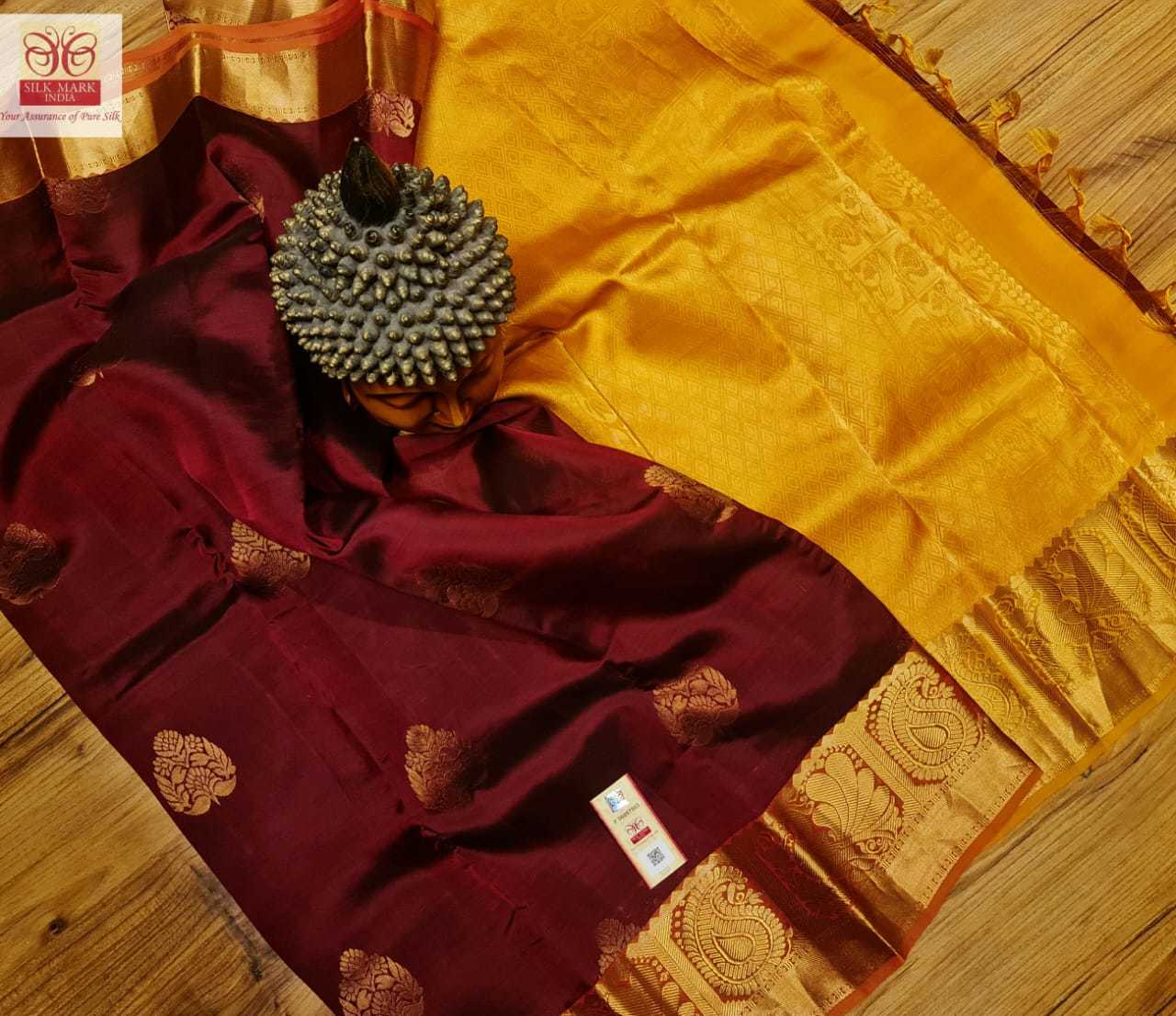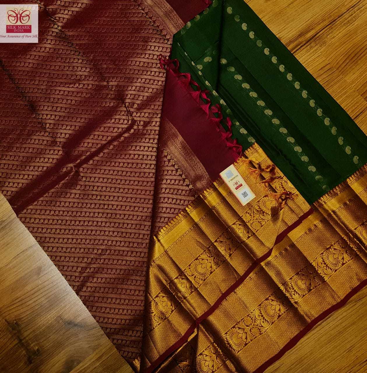 मैरॉन न्यू ट्रेडिशनल कांजीवरम सिल्क साड़ी