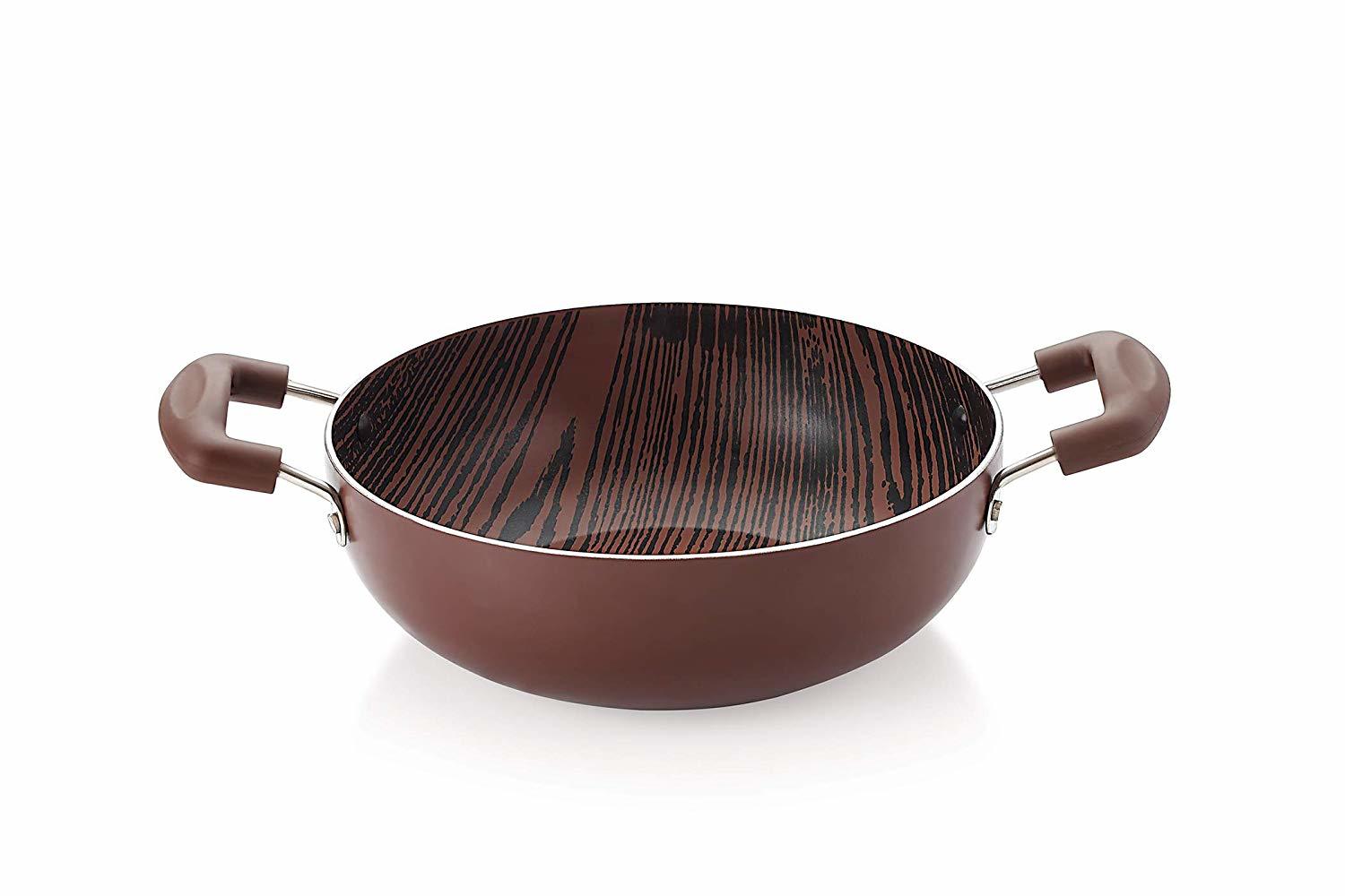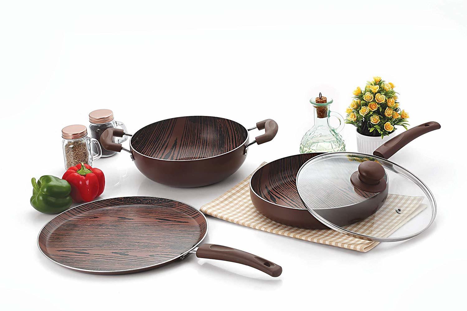 Explore in english - Nirlon Aluminium Nonstick Woody Cookware Set, 4-Pieces, Brown