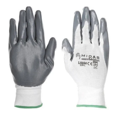 ग्रे-व्हाइट नाइट्राइल कोटेड हैंड ग्लव्स