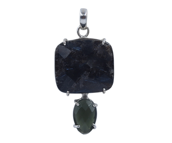 ब्राउन न्यूमाइट और फेसेटेड मोल्डावाइट स्टोन 925 सिल्वर पेंडेंट