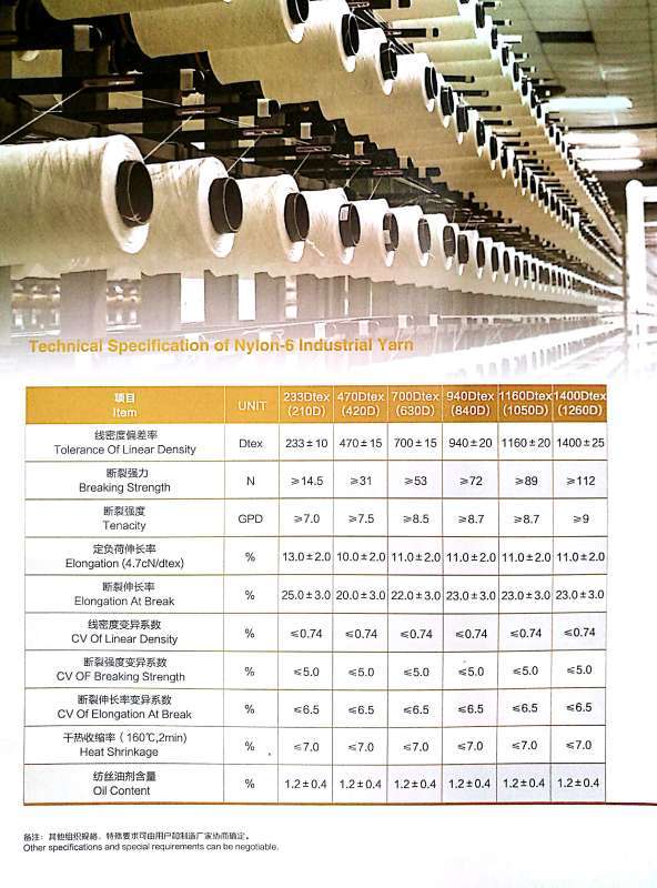आवश्यकता के अनुसार नायलॉन 6 हाई टेनसिटी यार्न