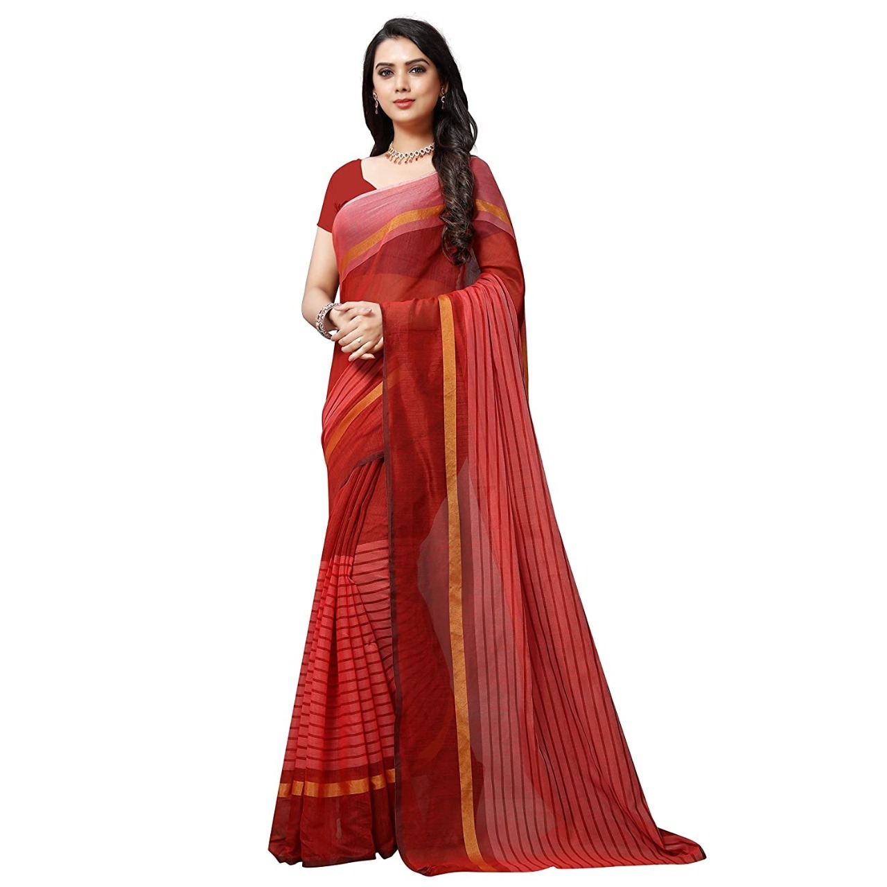 पिंक (गुलाबी) महिलाओं के लिए कॉटन ब्लेंड बेज प्रिंटेड साड़ी ब्लाउज पीस के साथ
