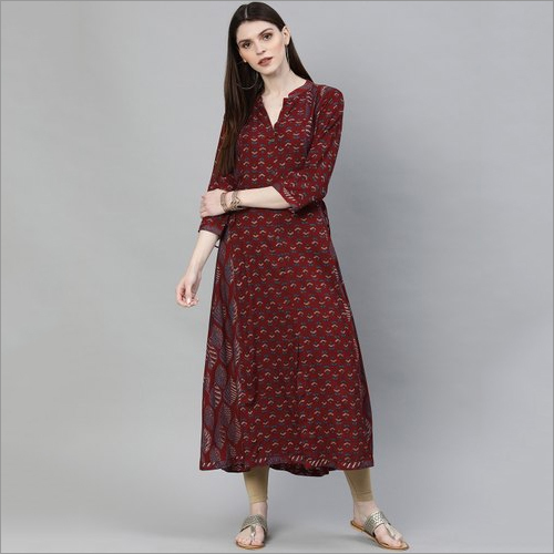 ऑलिव ग्रीन रेयॉन प्रिंटेड कुर्ती बस्ट साइज़: 38 इंच (इंच)
