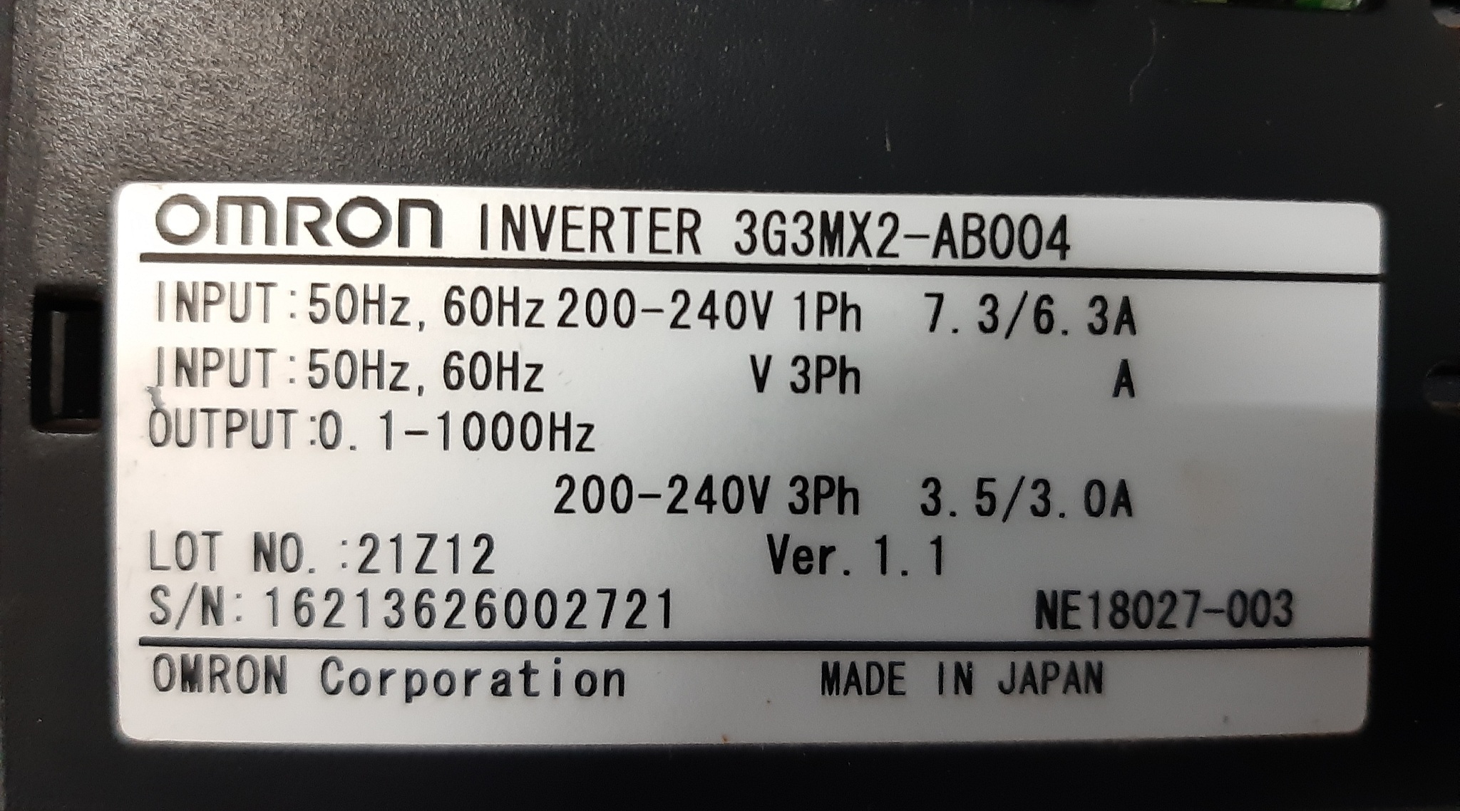 ओमरॉन इन्वर्टर ड्राइव 3g3mx2-ab004