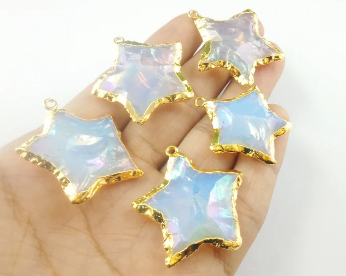 Explore in english - Opalite Mystic Star Shape 25-31mm Gold Electroplated Gemstone Pendant