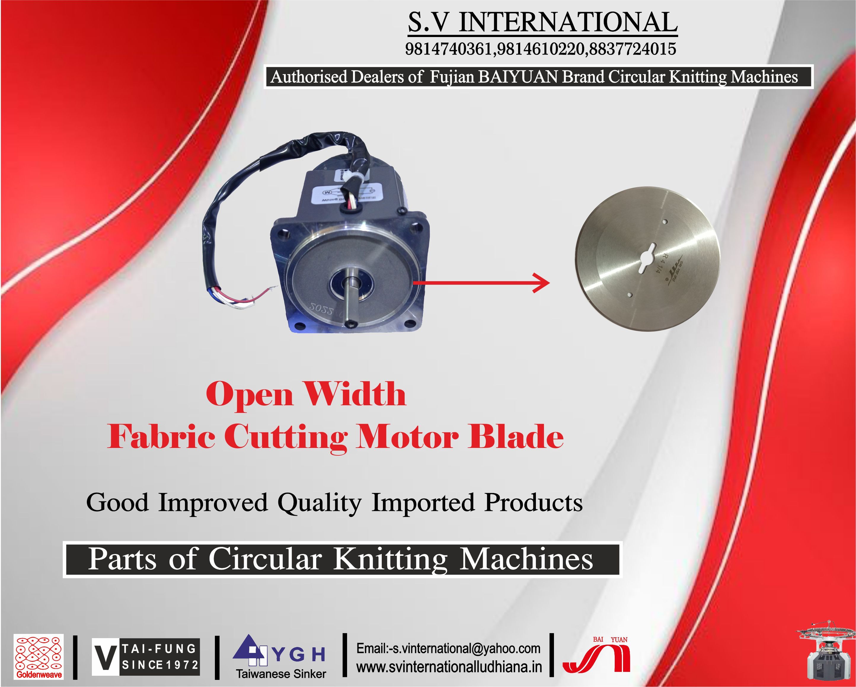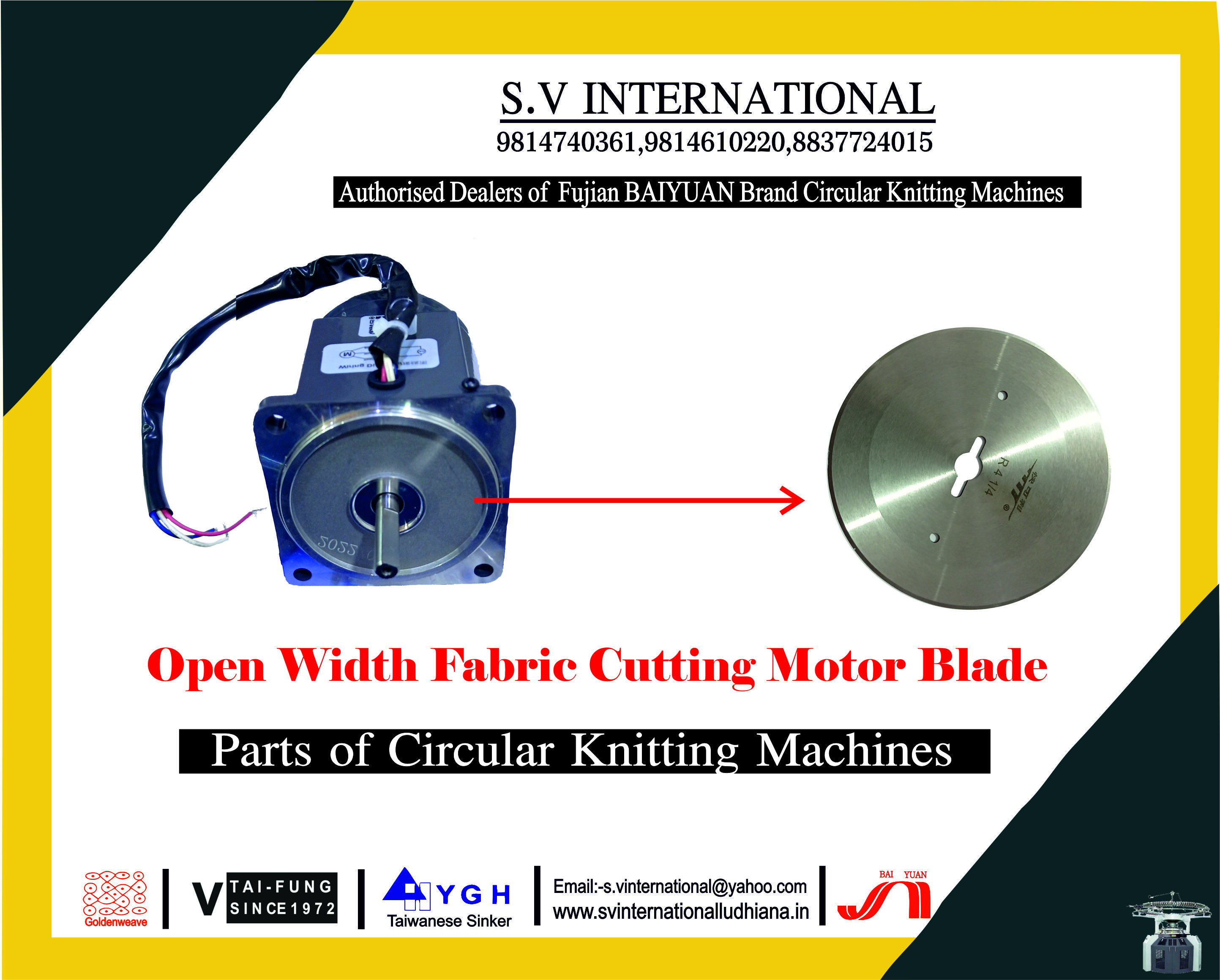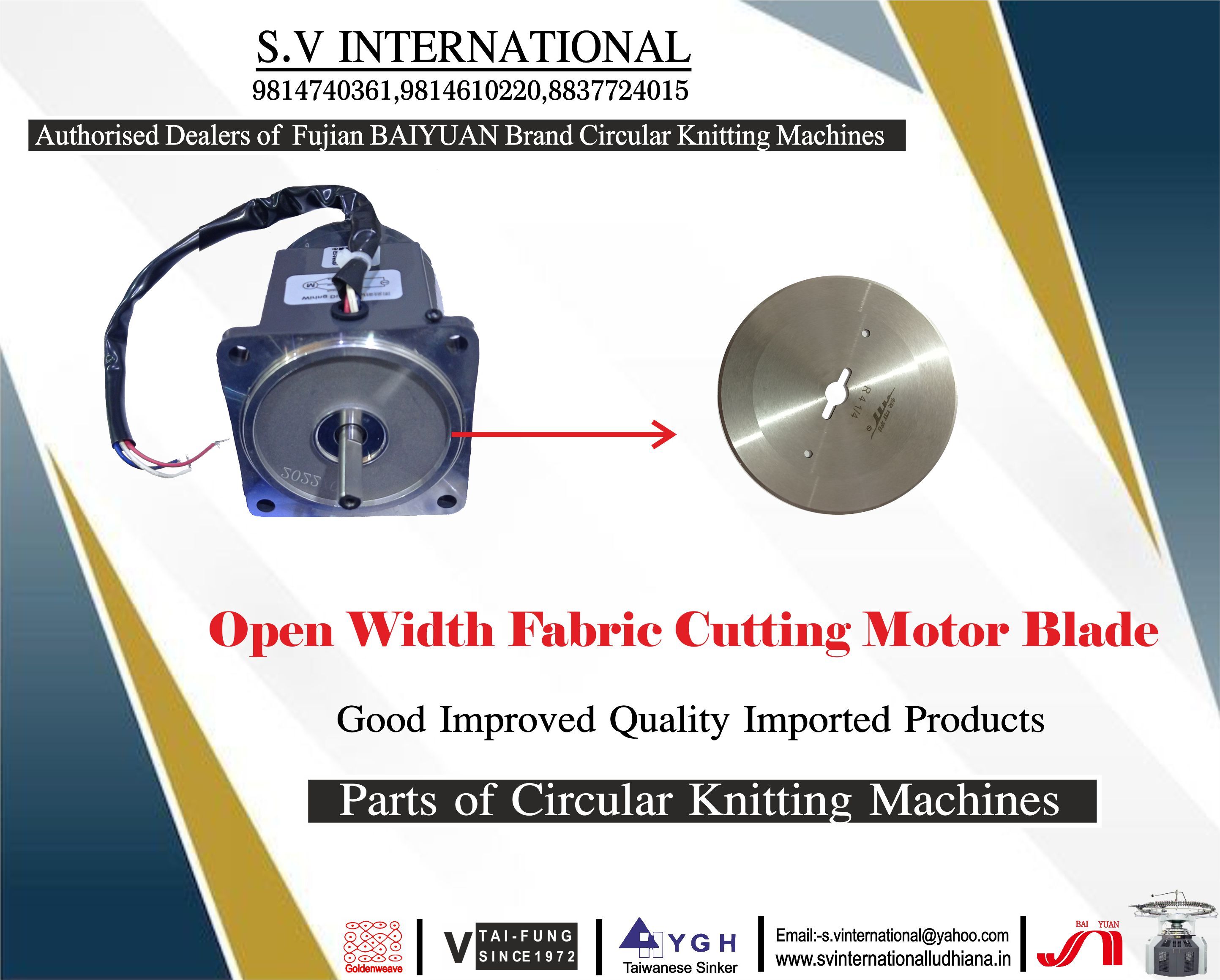 स.व् इंटरनेशनल, 2016 में पंजाब के लुधियाना में स्थापित, भारत में टेक्सटाइल मशीनरी के पुर्जे, अवयव और सहायक उपकरण का टॉप आयातक,आपूर्तिकर्ता,व्यापार कंपनी,थोक विक्रेता है। स.व् इंटरनेशनल ट्रेड इंडिया के सूचीबद्ध उत्पादों के सत्यापित और विश्वसनीय विक्रेताओं में से एक है। आपूर्ति और व्यापार के अपने व्यापक अनुभव के साथ, स.व् इंटरनेशनल ने उच्च गुणवत्ता आदि के साथ बाजार में अपने लिए एक प्रतिष्ठित नाम बनाया है। ग्राहक केंद्रित दृष्टिकोण पर ध्यान केंद्रित करते हुए, स.व् इंटरनेशनल की अखिल भारतीय उपस्थिति है और पूरे देश में एक विशाल उपभोक्ता आधार को पूरा करता है। स.व् इंटरनेशनल से ट्रेड इंडिया के गुणवत्ता-सुनिश्चित उत्पादों () को थोक में खरीदें।