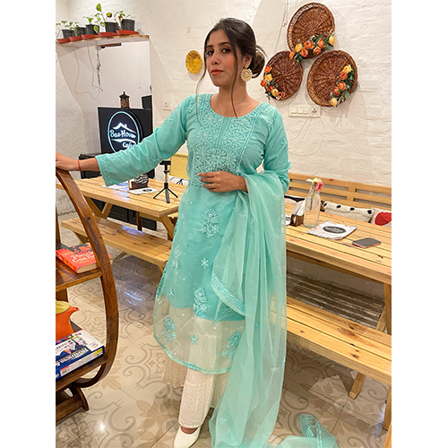 दुपट्टे के साथ किसी भी रंग की ऑर्गेंज़ा चिकन कुर्ती