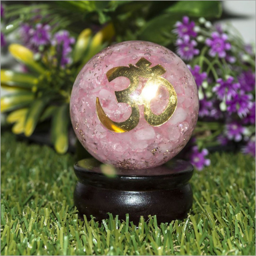 ओम लोगो बॉल के साथ ऑर्गोन रोज़ क्वार्ट्ज़