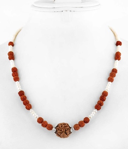 Explore in english - Original Rudraksha With Pearl Gemstone Bedaed Necklace