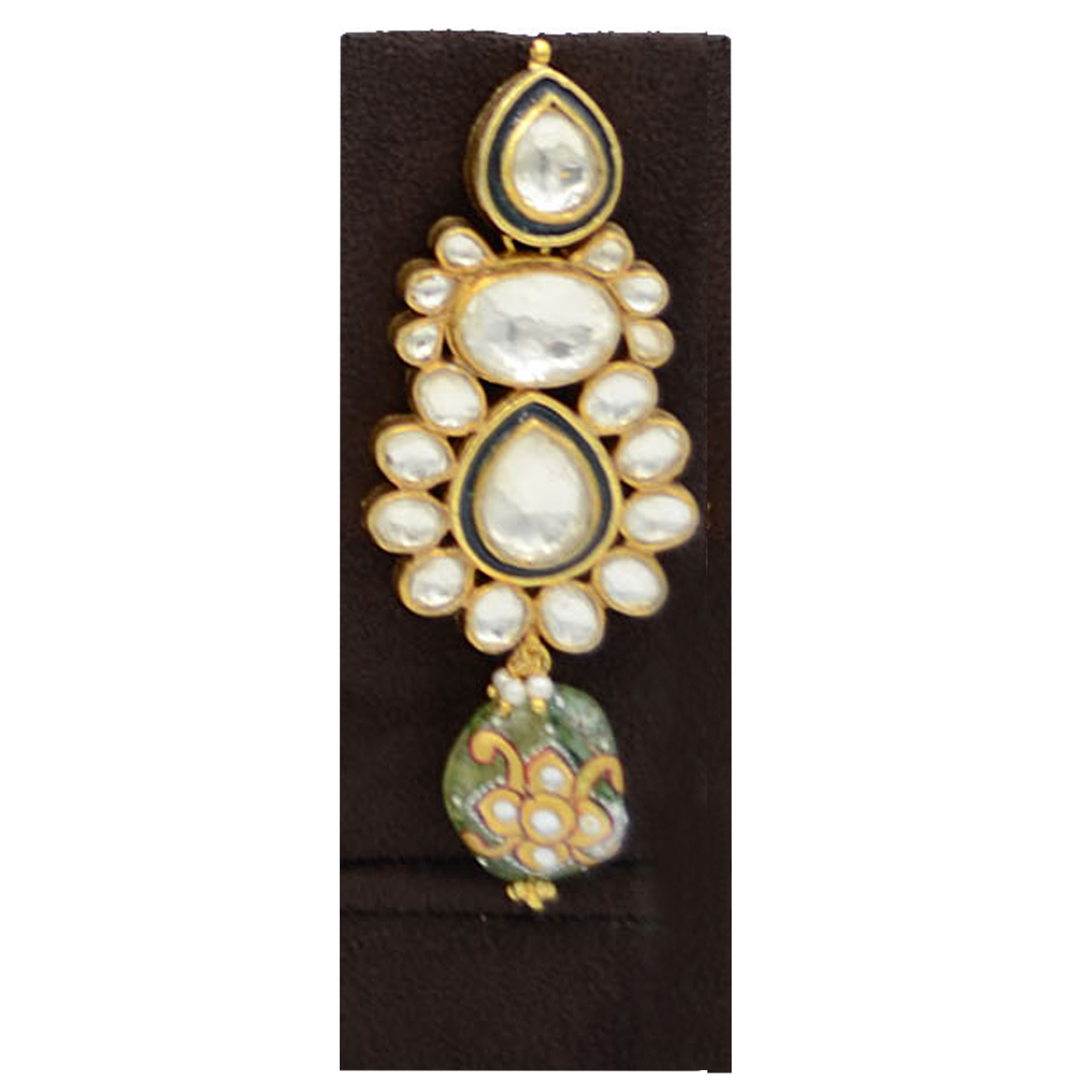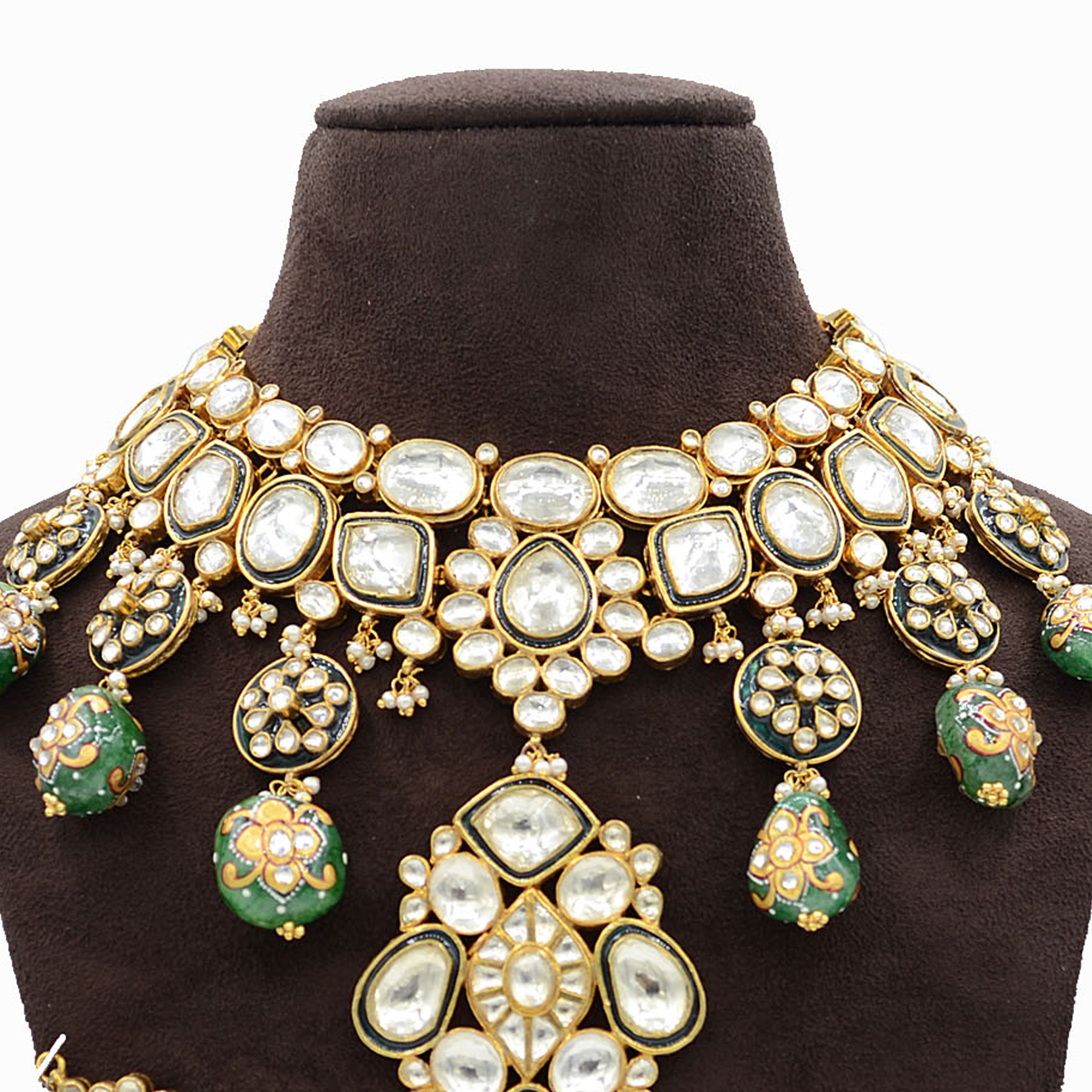 Explore in english - Pachi Kundan Necklace Set with Green Minakari Hangings