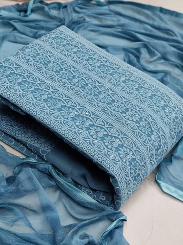 Explore in english - Washable And Comfortable Blue Printed Unstitched Chiffon Ladies Suit