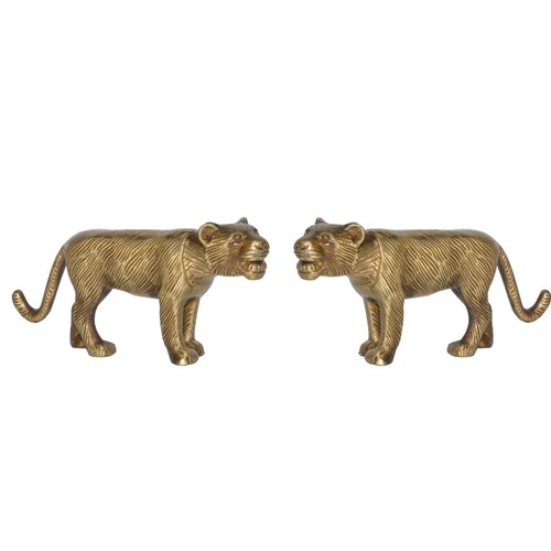 तांबे के लकड़ियों के साथ हाथ से बने बाघ की मूर्ति का जोड़ा, सजावटी भारतीय कांस्य रूप, प्राचीन फ़िनिश शोपीस उपहार वस्तु