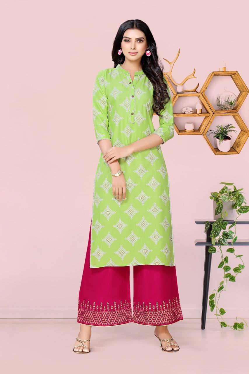 Explore in english - Palazzo Vol 2 Rayon Kurtis With Plazzo