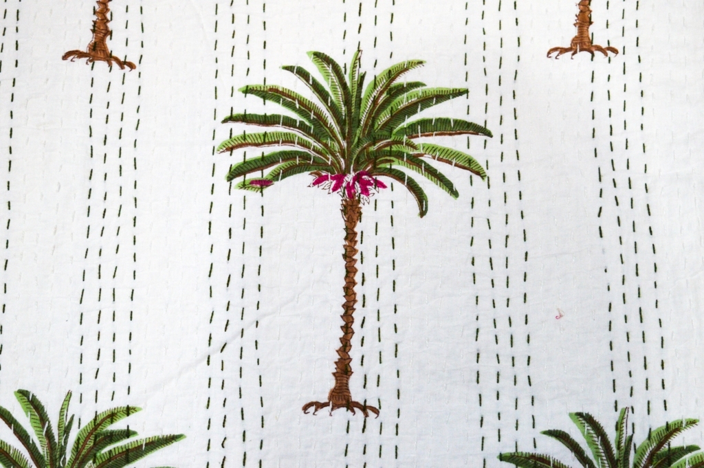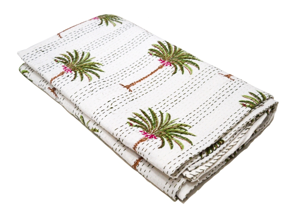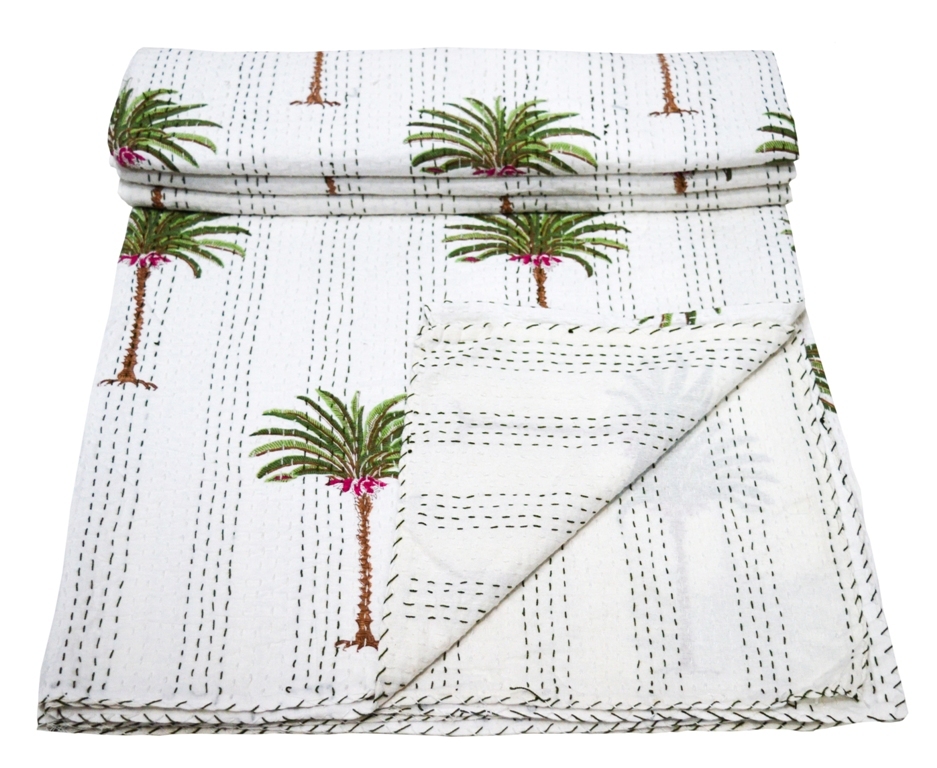 वॉशेबल पाम ट्री प्रिंट डिज़ाइन ट्विन कांथा बेड कवर