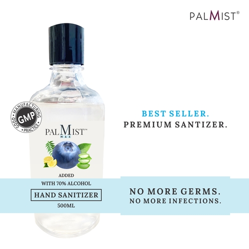 पामिस्ट हैंड सैनिटाइज़र 70% अल्कोहल 500 मिली के साथ।