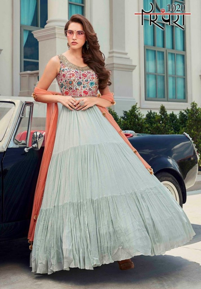 मल्टी कलर परम्परा Vol-4 फुल स्टिच्ड जॉर्जेट गाउन कैटलॉग कलेक्शन