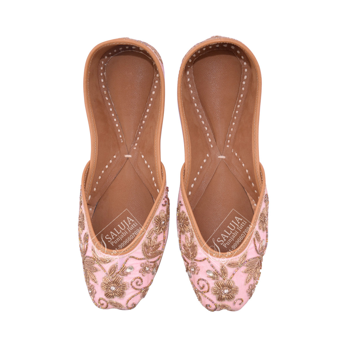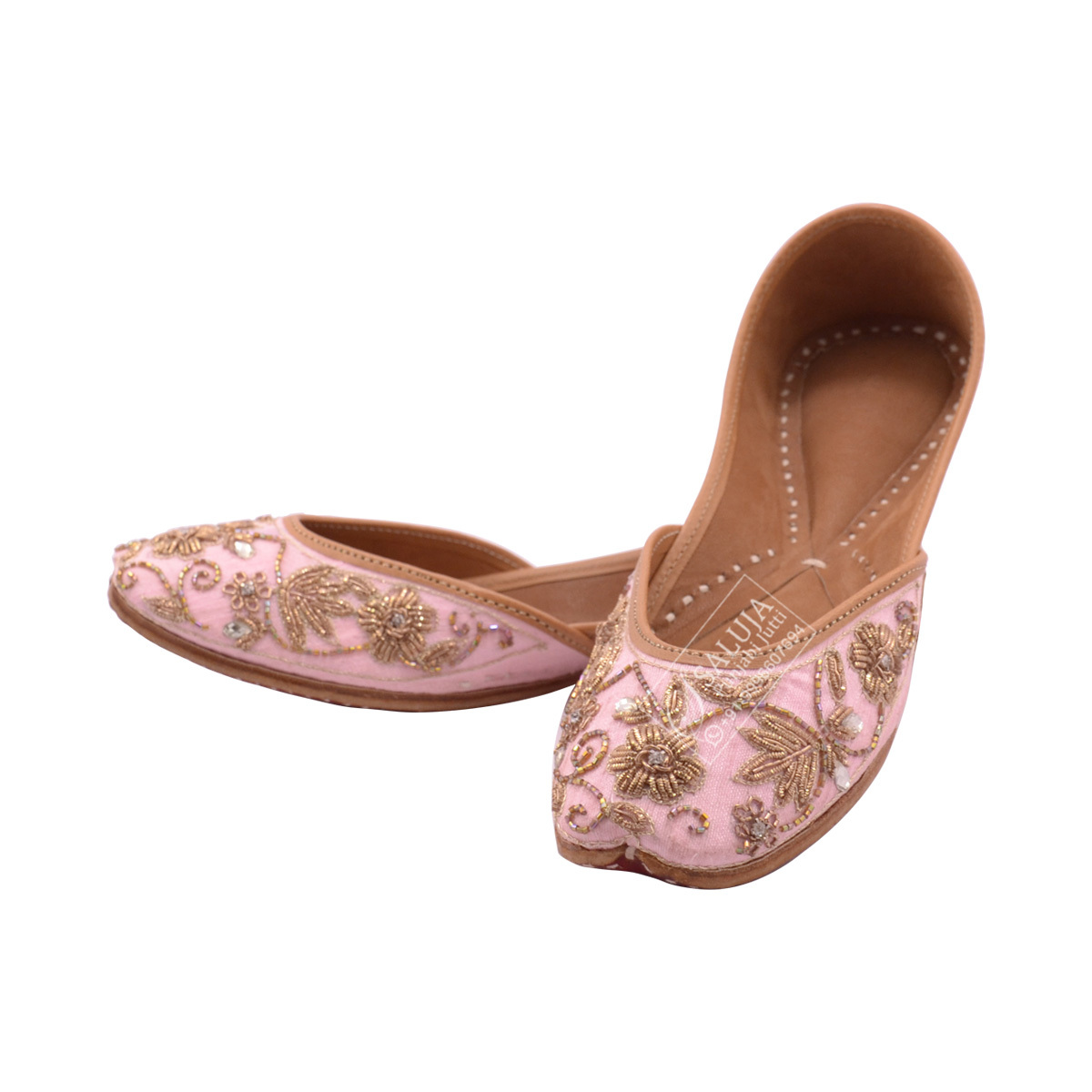 पार्टी वियर पीच कलर हैंडवर्क पंजाबी जूती